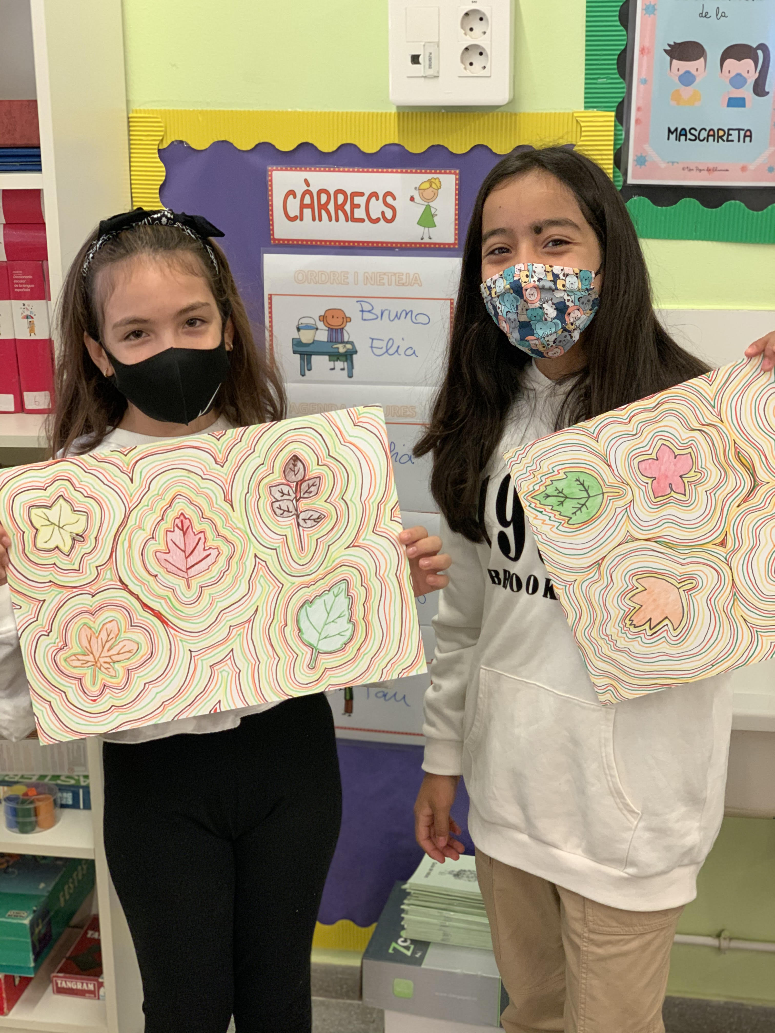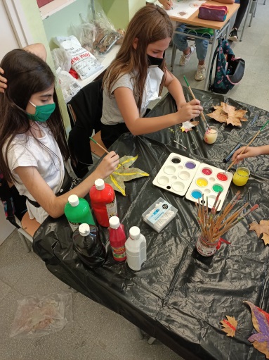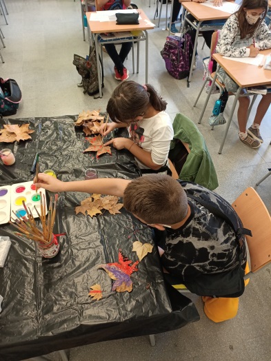 L’altra tasca ha estat molt més creativa, l’alumnat de 6è ha recollit fulles dels arbres per després decorar-les amb pintura i finalment confegir una làmina decorativa que esperem puguin gaudir en família en les seves respectives cases.