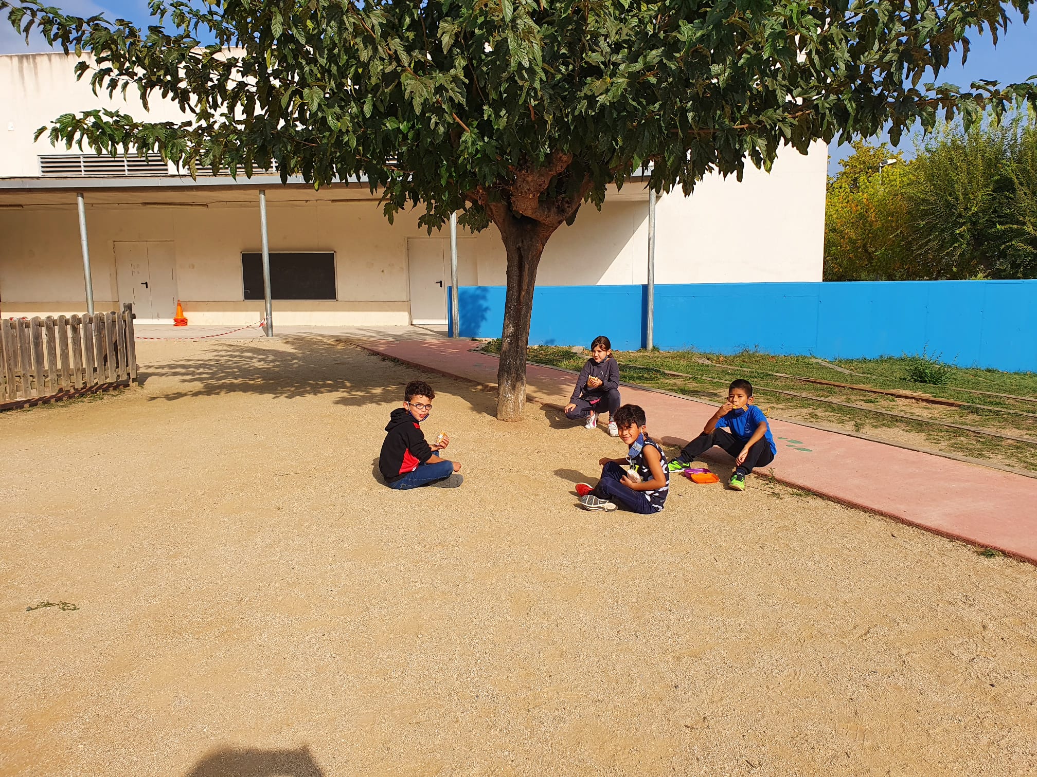 mireu què bé esmorzen els nens i les nenes de 3r quan anem al pati. Com ja sabeu, aquest curs, hem de mantenir la distància de seguretat entre nosaltres i com podeu observar a les fotografies, els vostres fills i filles ho estan fent molt bé!
