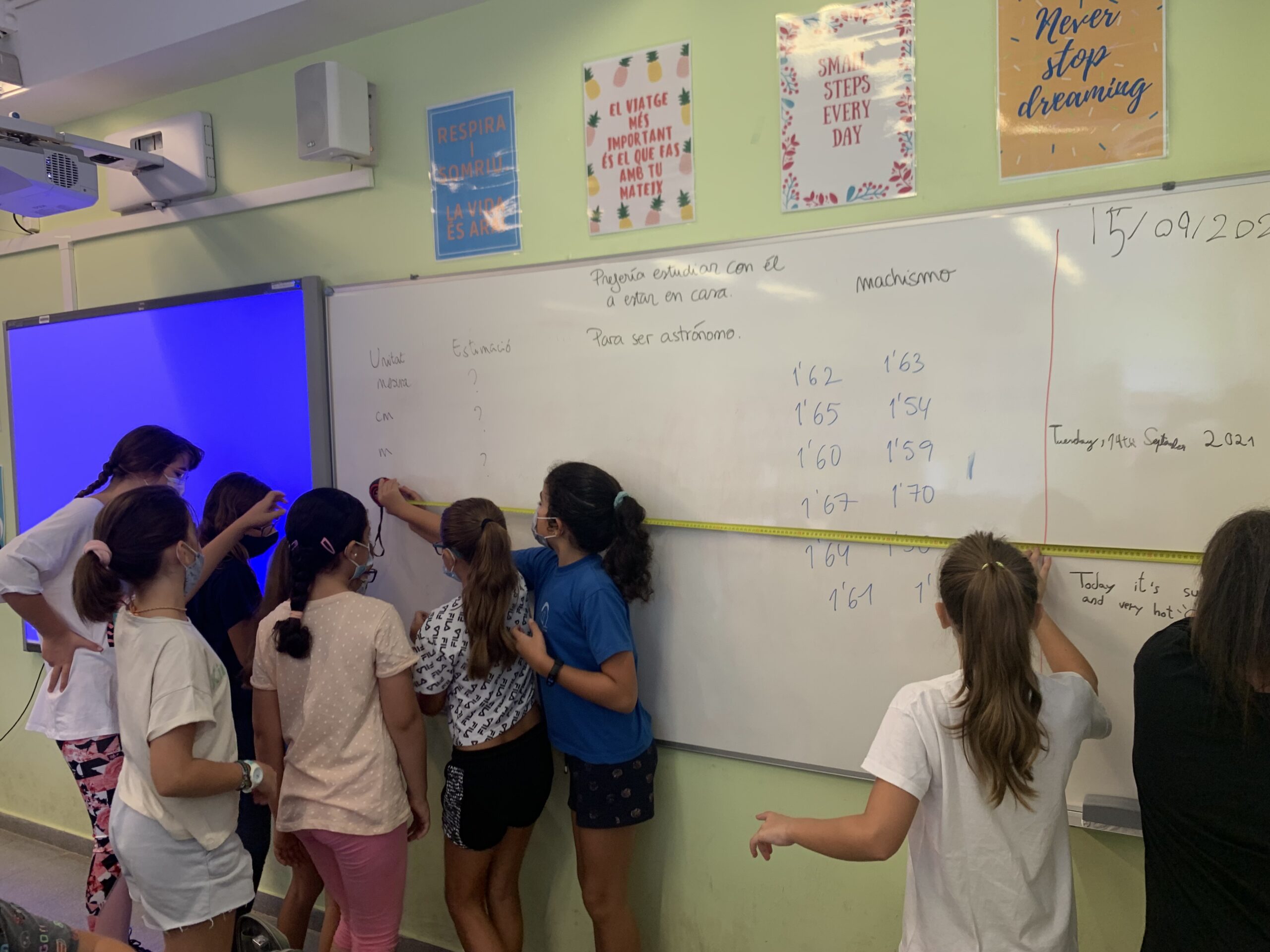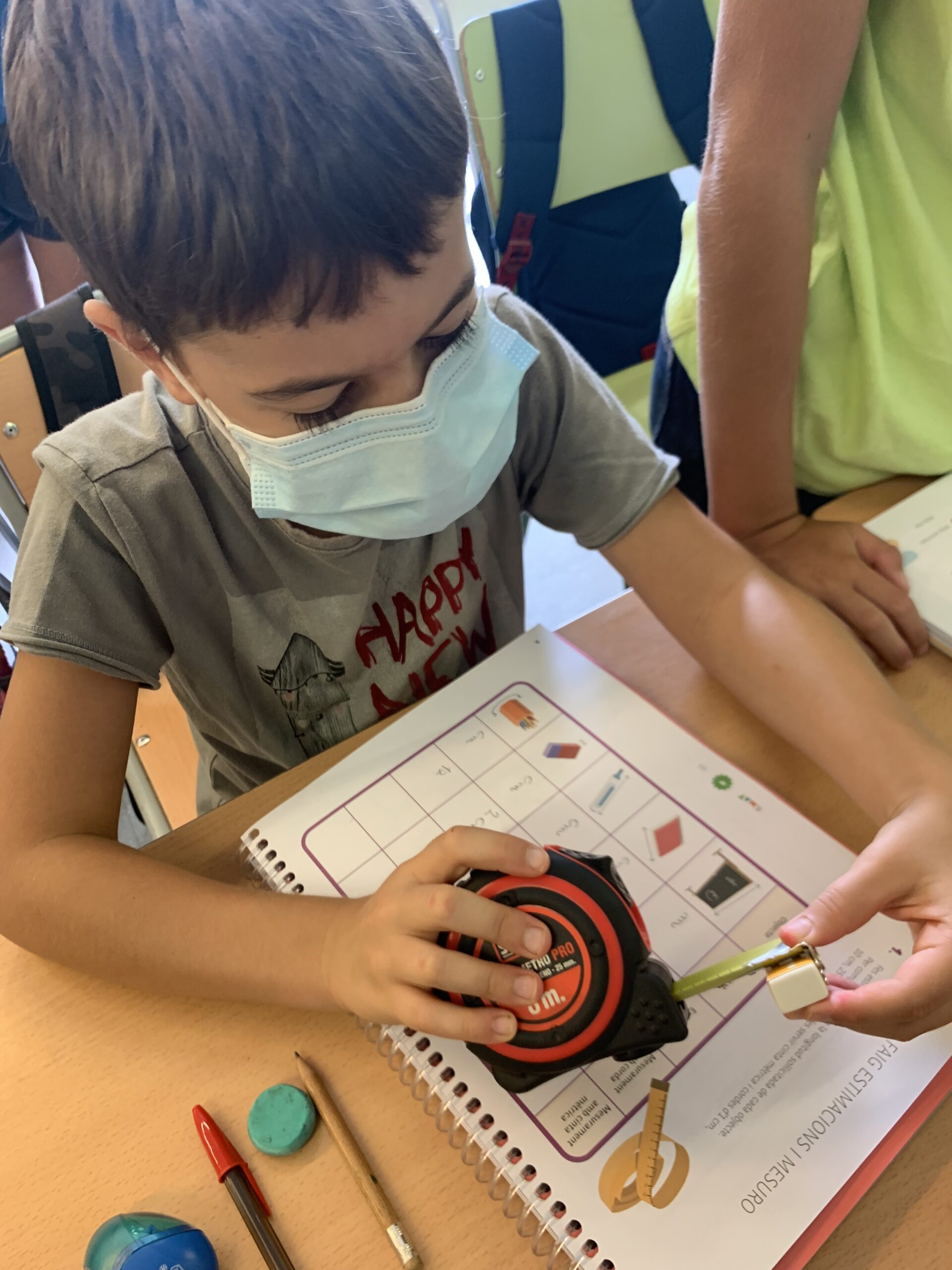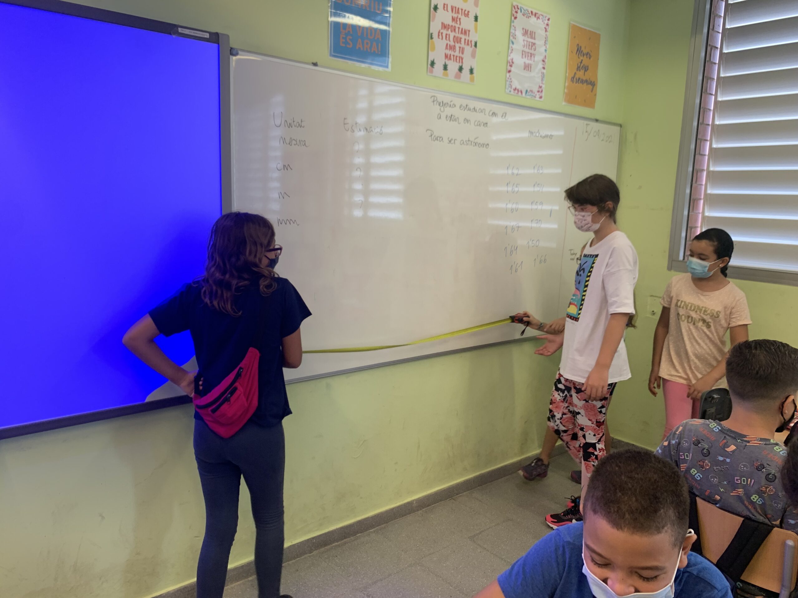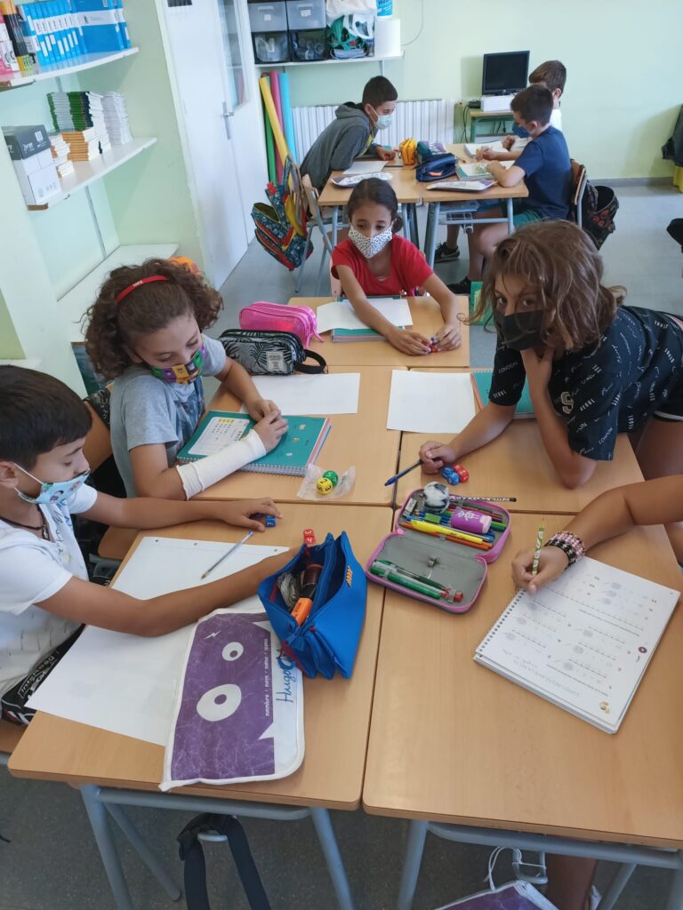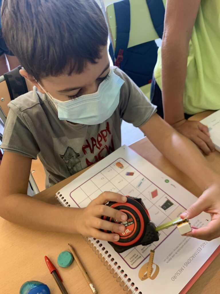 Hola! Iniciem el curs amb moltíssima força, ànims i motivació. Les noies i els nois de 5è han començat la seva tornada a la rutina amb unes matemàtiques molt dinàmiques i manipulatives. Han estimat en grup i han mesurat molts objectes de la classe per tal de començar a conèixer les mesures i familiaritzar-se amb les cintes mètriques. Han jugat i après com començar a fer operacions que no havien realitzat abans. Han començat amb molt bon peu, molt d’esforç i molta dedicació.