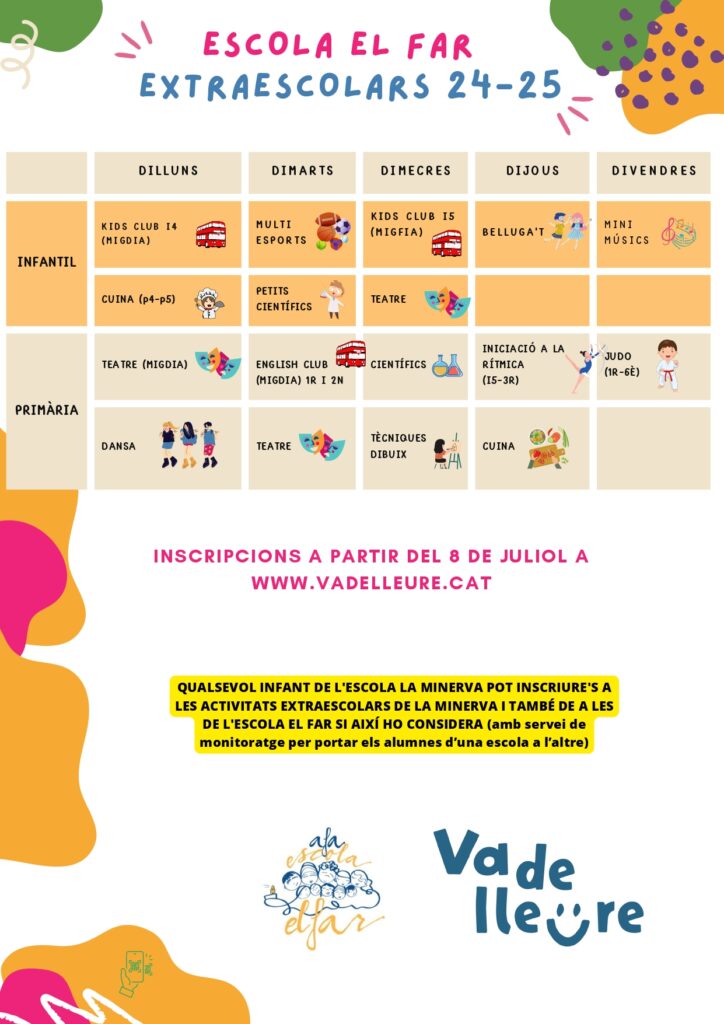 Activitats extraescolars EXTRAESCOLAR DE FUTBOL A TRAVÉS D’EXTRA FOOTBALL SCHOOL Per a més informació detallada dirigiu-vos a l’AFA.