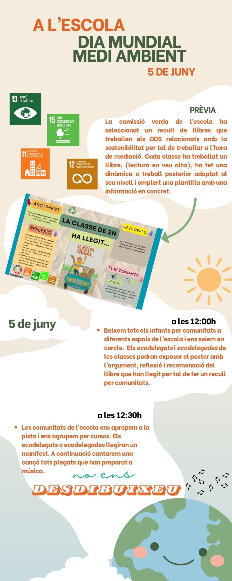 Remarquem que celebrar el dia 5 de juny, no és cosa d’un dia aïllat sinó de tots els dies pels quals lluitem per fer les accions més sostenibles que puguem: anant caminant o bicicleta, menjant menys processats i més frescos, reduint el consum general de les coses i reciclant.