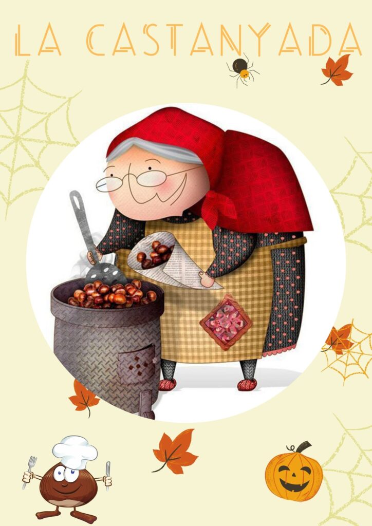 Mentrestant al pati de l’escola les famílies de l’AMPA ens han anat torrant les castanyes però sabeu qui ens les ha portat a les classes?Sí, la Castanyera! Quina emoció ens ha fet a tots/es plegats/des quan l’hem vist aparèixer per la porta.