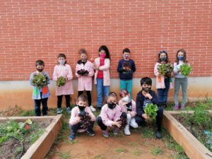 Alguns nens i nenes de segon han tingut el plaer de poder fer la collita de l’hort. Han recol·lectat unes maduixes i uns enciams estaven a punt per ser collits. Aquest grup d’infants, amb molta cura, els han collit i se’ls han emportat a casa.