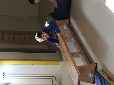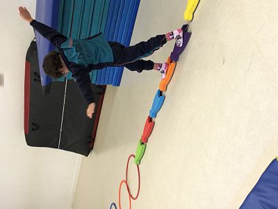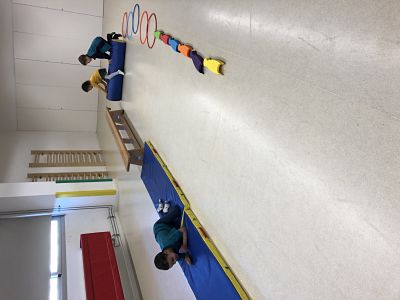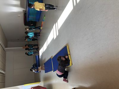 Els dilluns i divendres a psicomotricitat treballem el moviment del cos a través de jocs en grups petits de nens i nenes de P5. En aquestes sessions de psicomotricitat es treballa el control del moviment, la coordinació, l’equilibri, l’orientació en l’espai, la lateralitat (esquerra/dreta)… En els circuits el grup recorre un trajecte amb diferents activitats que es troben al llarg del camí, muntades amb matalassos, cèrcols, bancs, números/lletres marcats a terra, etc. Aquestes les han de realitzar de manera individual.