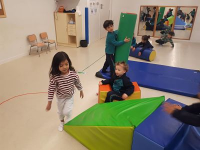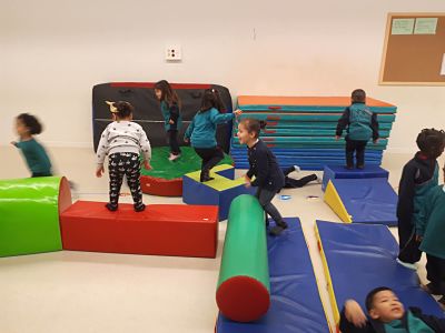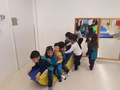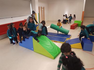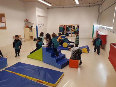 Amb les peces d’escuma que la formaven vam poder jugar de moltes maneres diferents: fent tobogans, pujant a cavall, passant sota un pont, saltant, fent rodolar les peces…