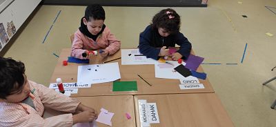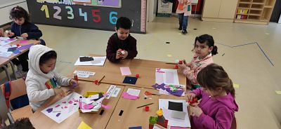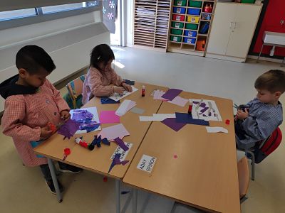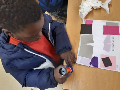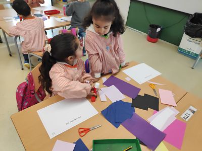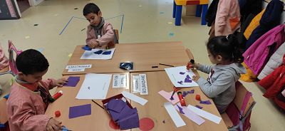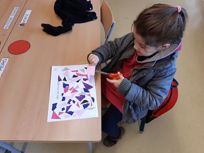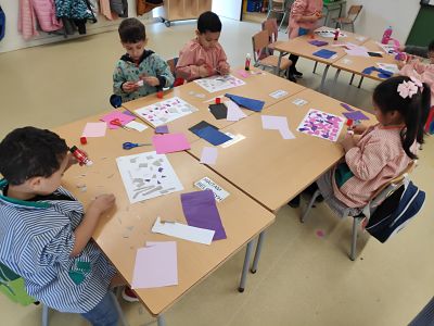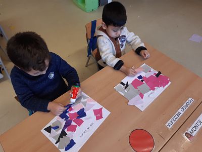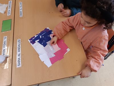 Amb el pas de l’hivern hem descobert que els colors del paisatge del nostre entorn van canviant. Hem pogut descobrir quins són els colors predominants en aquesta estació de l’any i amb ells hem realitzat un petit collage amb retalls. Cada un/a de nosaltres hem retallat papers donant-los la forma que hem volgut.