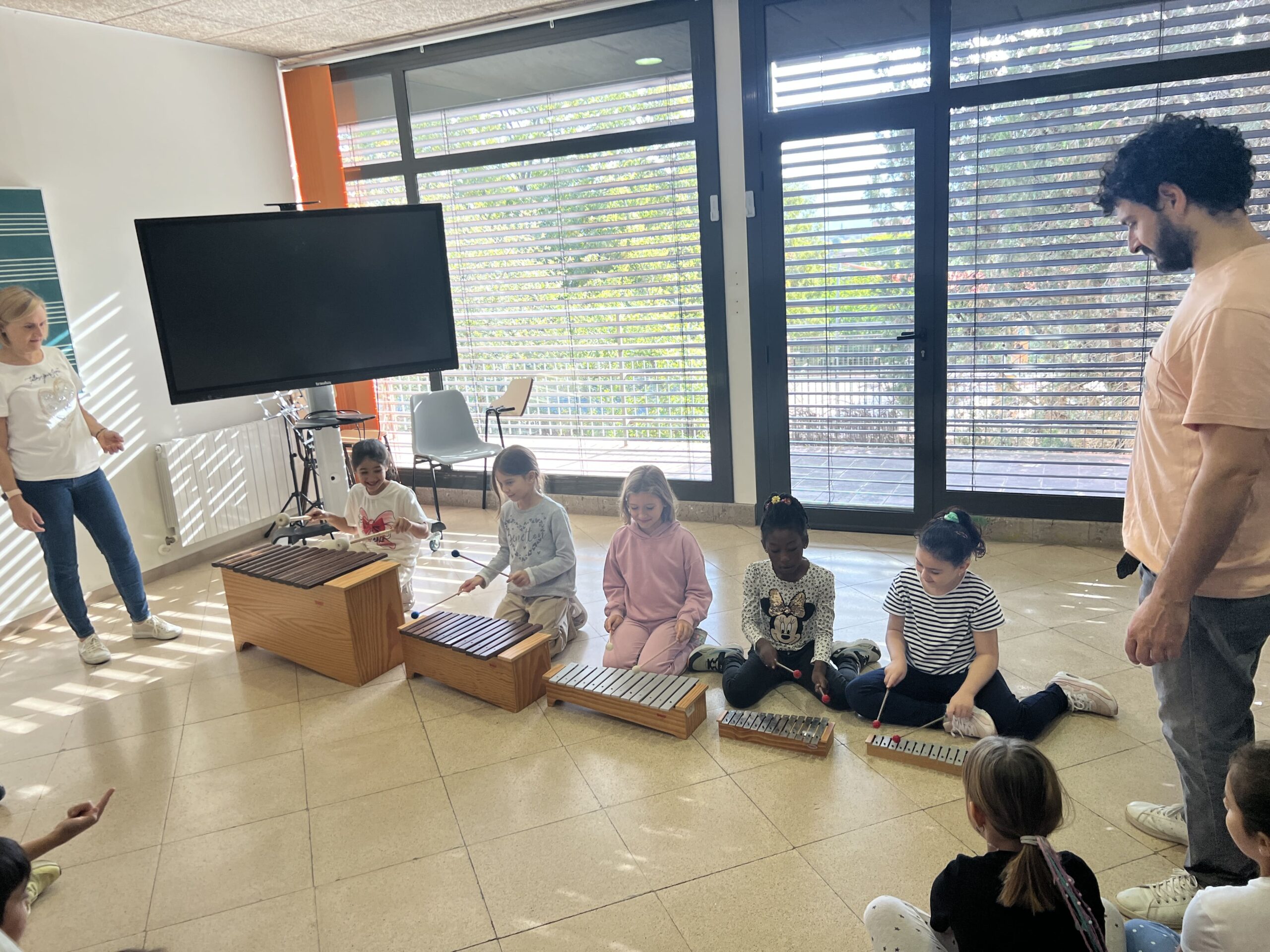 Però el moment estrella va arribar quan ens va tocar a nosaltres posar-nos a prova. Per grups, vam anar passant pels xilòfons i metal·lòfons, descobrint sons, ritmes i melodies. Per uns instants, ens vam sentir com autèntics músics damunt l’escenari.