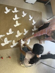 - Braçalets amb coloms: vam crear braçalets per portar la pau sempre amb nosaltres, com un petit recordatori diari dels valors que volem viure.