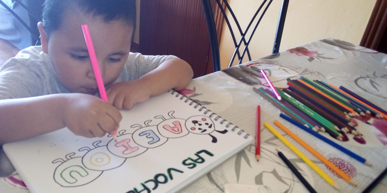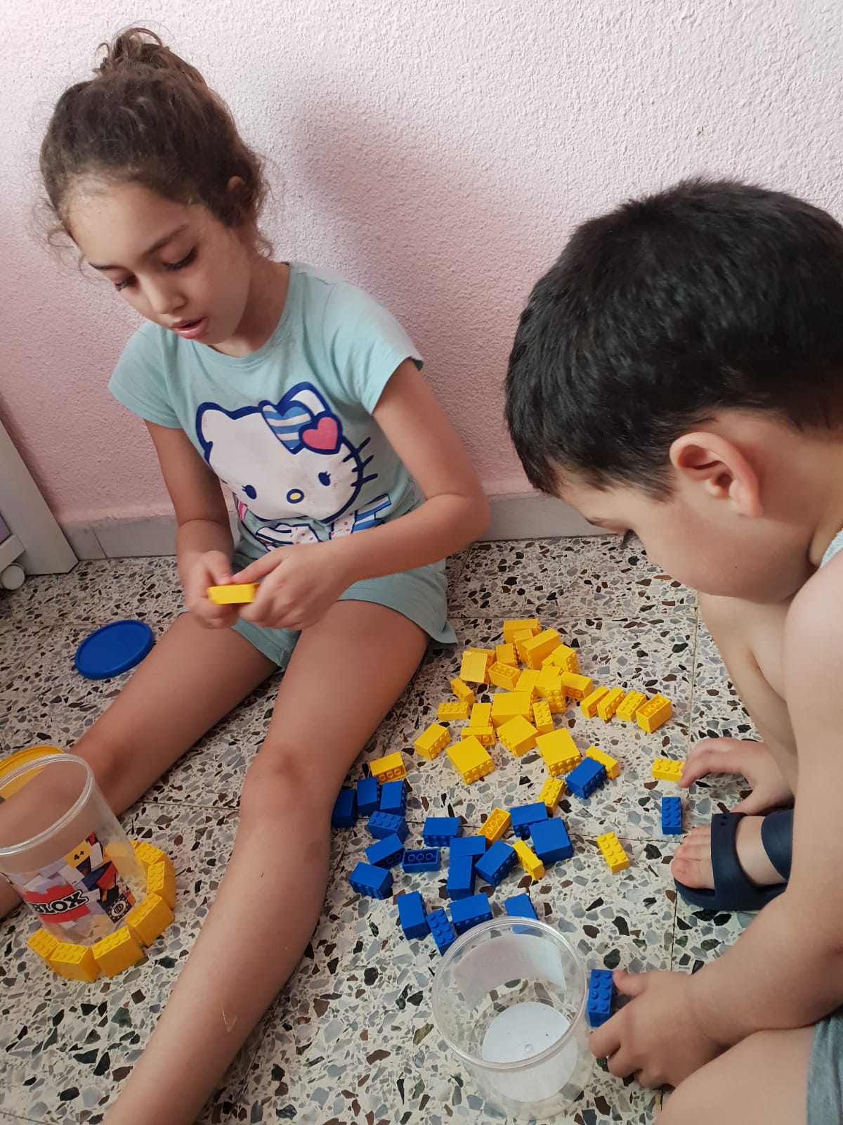 Dominic nos envía fotos desde su casa, haciendo números y letras.Y Adam jugando con su hermana amira a hacer clasificaciones de colores.