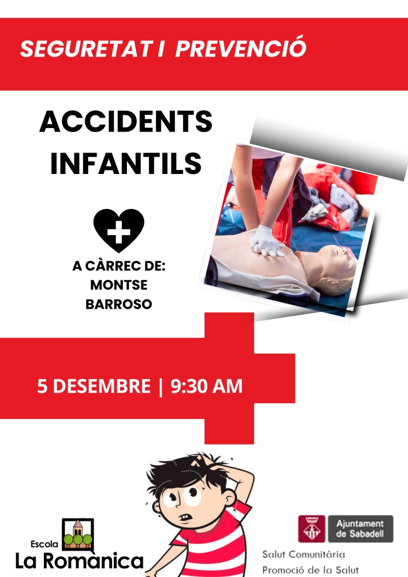 Des de l’Escola de Famílies, informem que el proper dijous, dia 5 de desembre tindrà lloc, a les 9.30 h, a la nostra Escola la xerrada: Accidents Infantils a càrrec de la Montse Barroso, tècnica de l’Ajuntament de Sabadell.