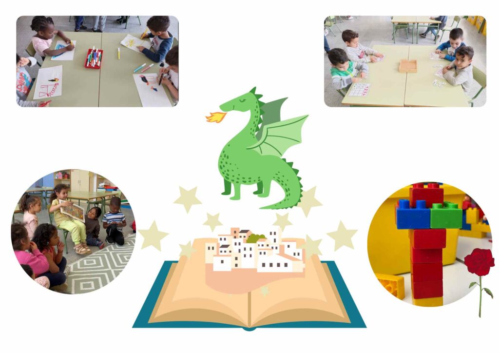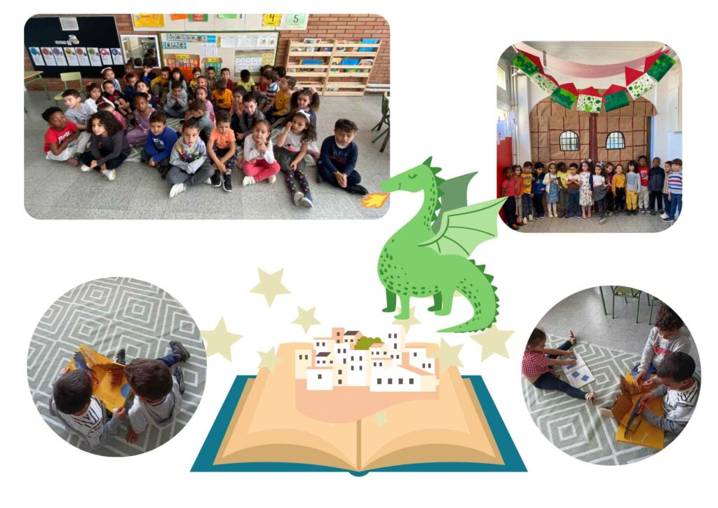 Durant el mes d’abril, els infants de la classe de Les Abelles i dels Esquelets hem estat fent activitats relacionades amb Sant Jordi. Vam fer uns dibuixos que han decorat el passadís al llarg de les darreres setmanes. Tota l’Escola hem participat en un projecte comú: un conte. Les nostres classes havien d’elaborar un personatge i els més grans, inventar-se una història amb ells.