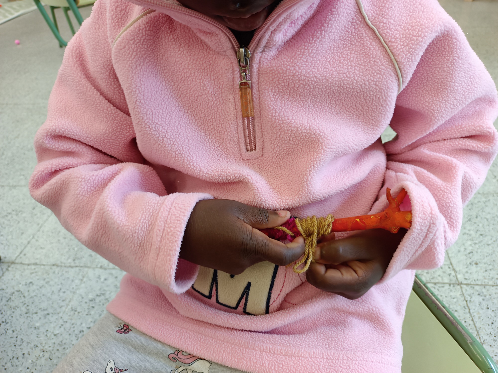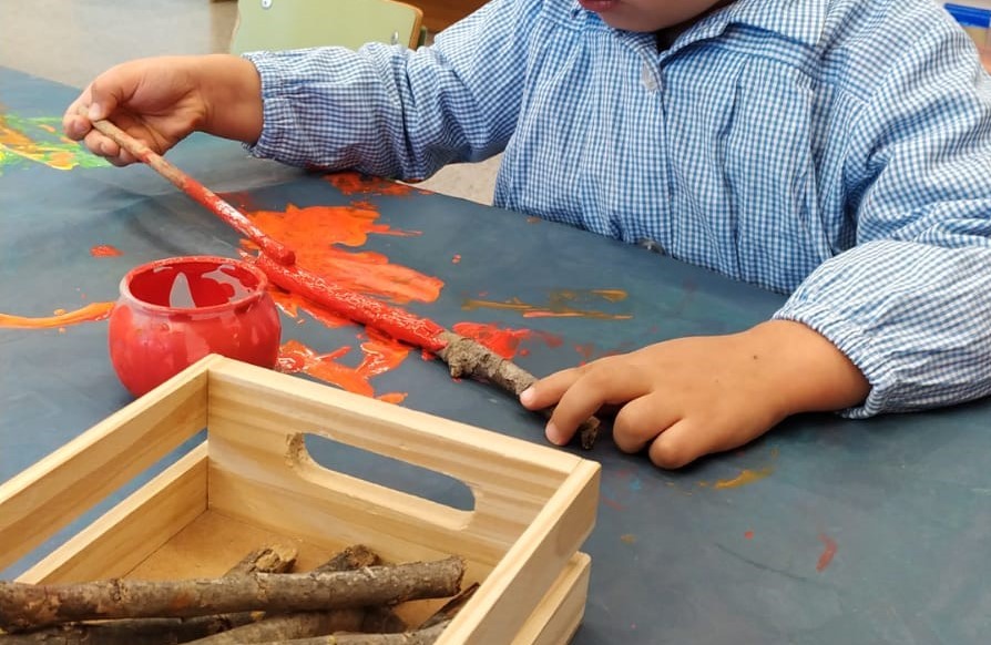 Vam triar els pals com a suport perquè són un element diferent en el camp artístic que ens donen l’oportunitat de fomentar la creativitat, l’observació i la transformació de l’entorn. A més la incorporació de la llana ens va permetre desenvolupar la motricitat fina.