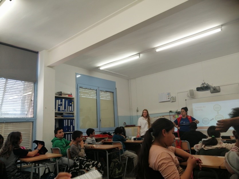Els nens i nenes de 5è A i B hem rebut una xerrada sobre el bulling. Van visionar uns vídeos, també van sortir a la pissarra per escriure paraules que alguna vegada ens havien dit i no ens havien agradat.