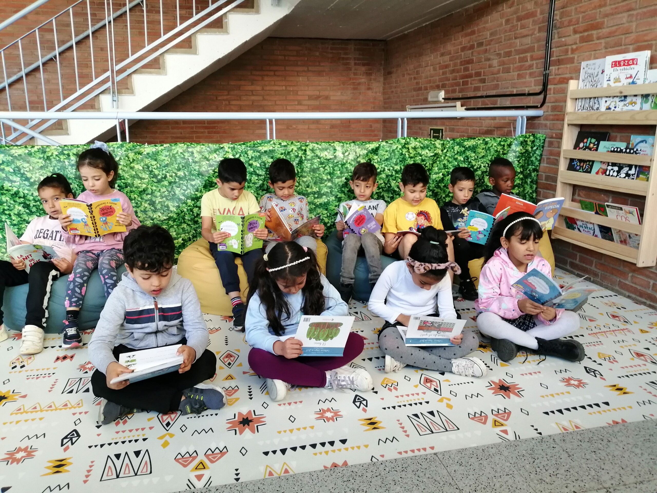 És un espai molt acollidor on podem mirar i llegir diferents tipus de llibres, contes, revistes, àlbums il·lustrats… També ens agrada molt seure i escoltar quan ens expliquen un conte o una història.
