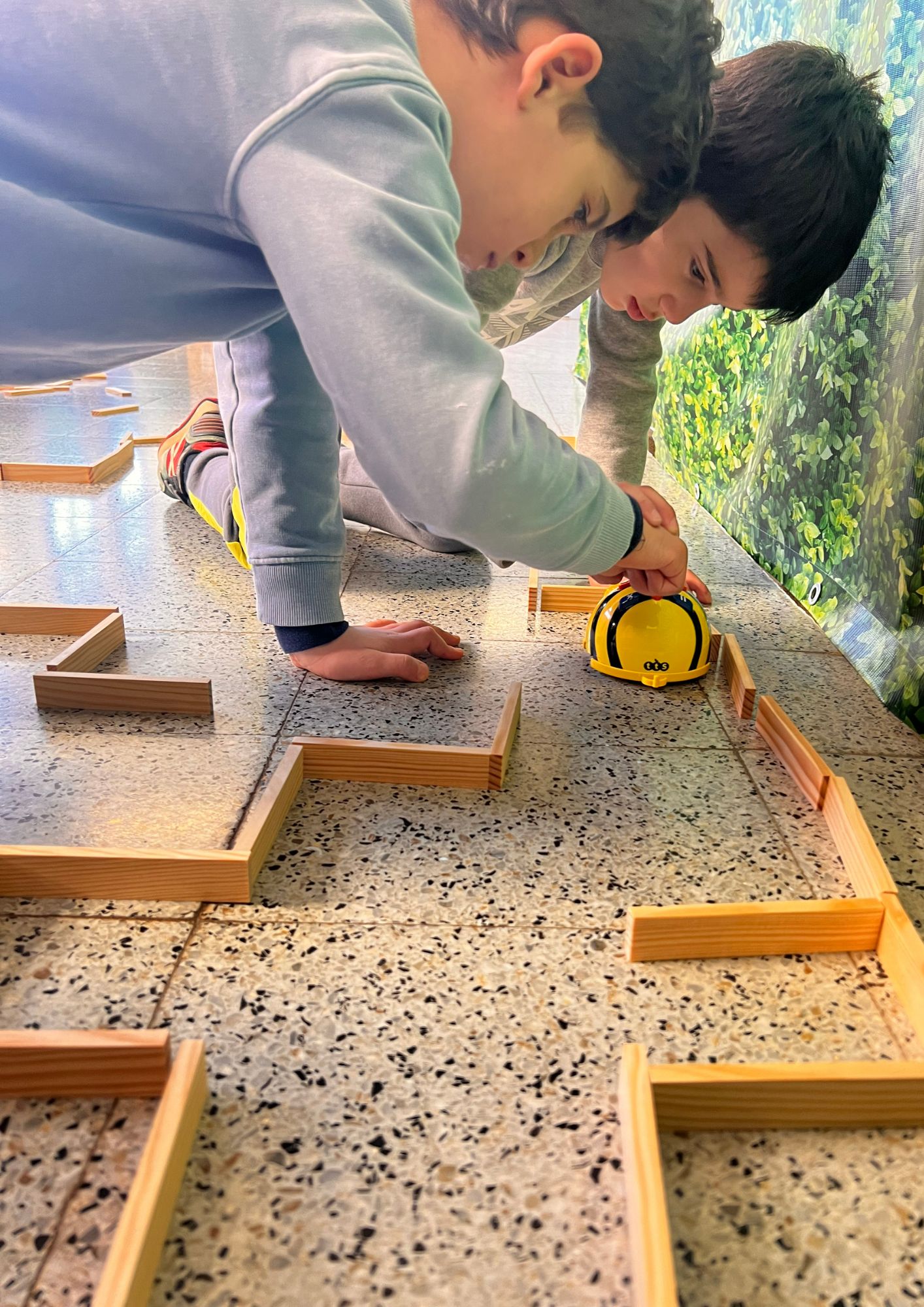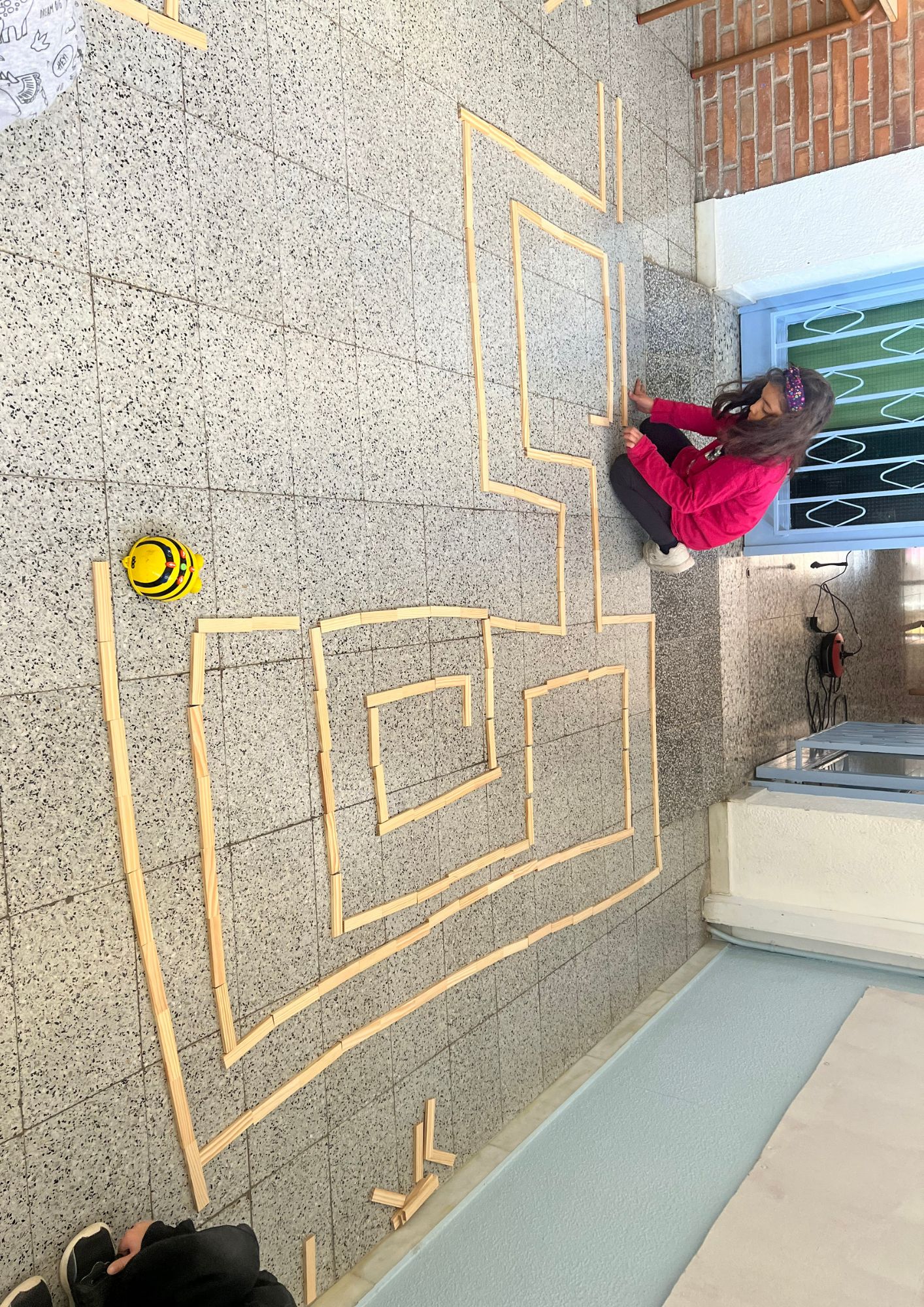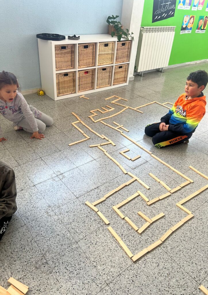 Aquest trimestre, el repte ha estat crear laberints en grups cooperatius, per on la Beebot es pugui desplaçar lliurement, sent capaços de seqüenciar les ordres que programem amb els comandaments, per tal que faci el recorregut complet.