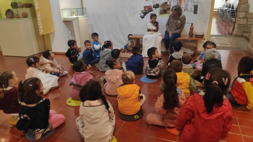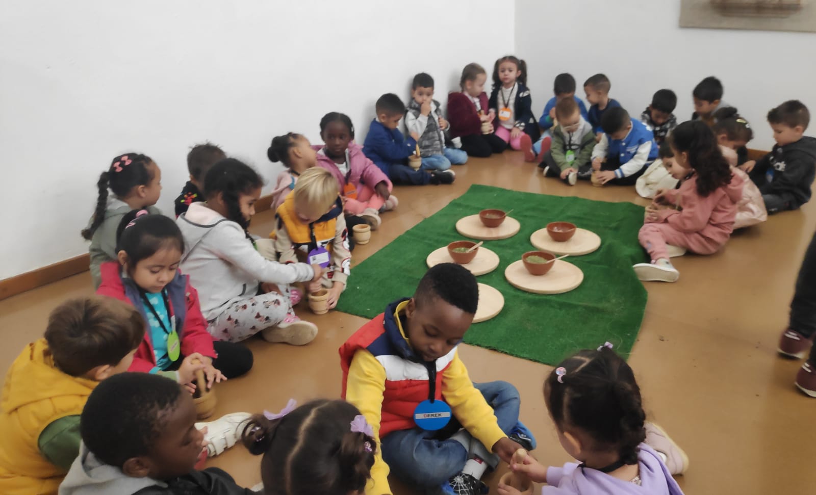 • I, el passat dimarts, dia 24, vam anar al Museu d’Història de Sabadell on la Musa, un titella, ha convidat als nens i nenes a casa seva, què és el museu. Ella els ha explicat què és un museu i què s’hi guarda; a més amb una mà de morter hem esmicolat unes herbes aromàtiques (orenga, romaní, julivert i farigola) per una recepta medieval que ens hem pogut emportar a casa.