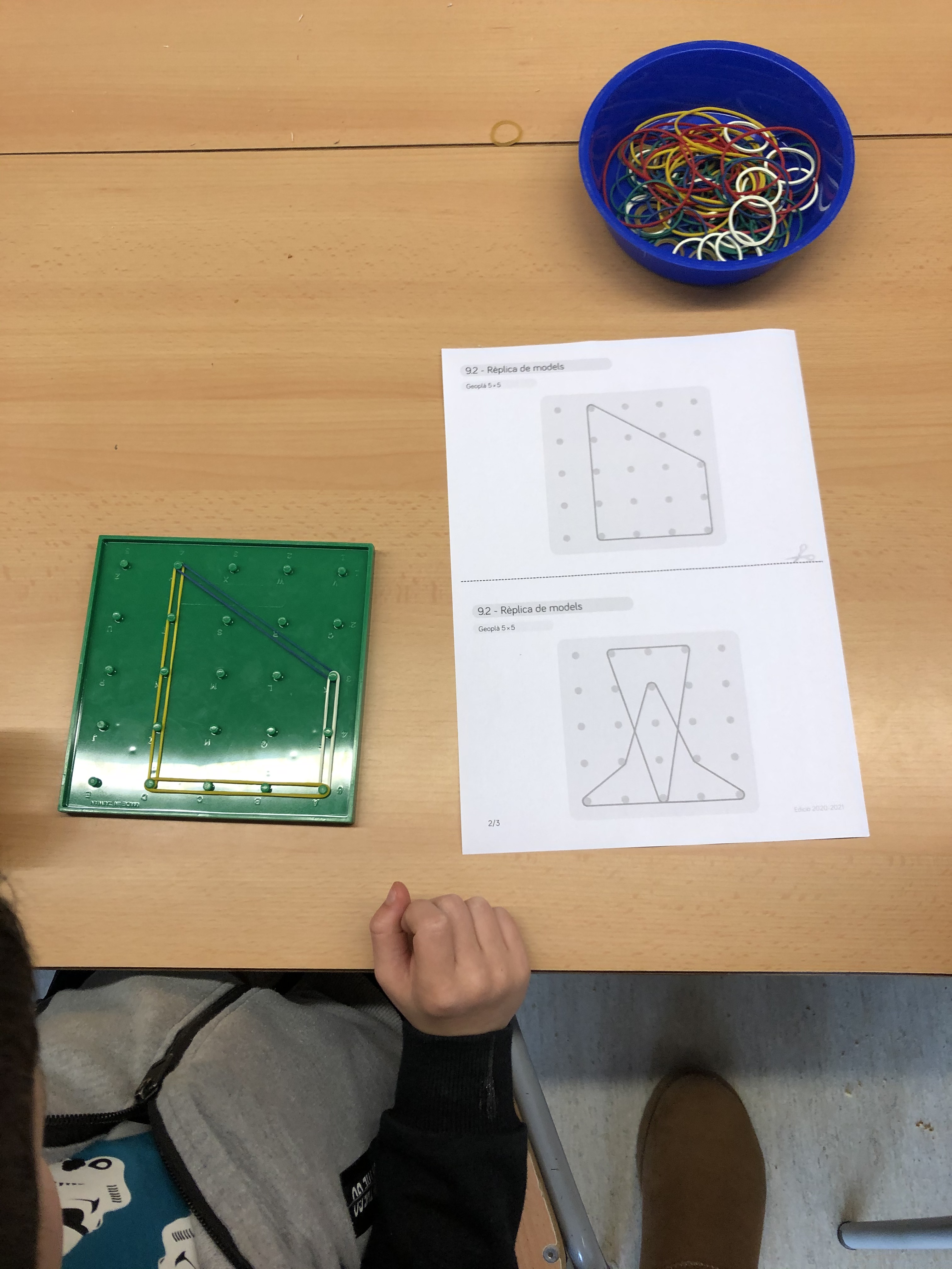 26/01/21Dins del treball de Innovamat, aquesta setmana hem fet la primera activitat que ens proposaven en els “Racons” on ens han fet una proposta de geoplà. Vam començar per un de molt senzill, però mica en mica la cosa se’ns ha anat complicant….