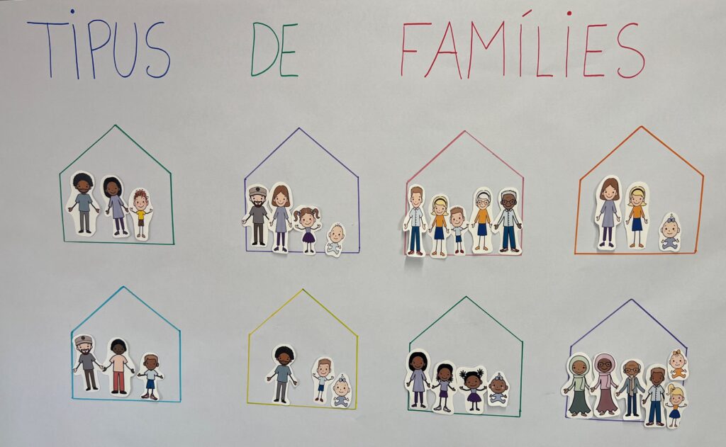 Vam iniciar la Situació d’aprenentatge (SdA) plantejant-nos un repte: Què és una família? Vam començar les activitats parlant sobre què entenem per família i quins tipus hi ha, entre tots hem creat diferents nuclis familiars i hem vist que hi ha diversitat de tota mena!! El conte La meva família de Glòria Fort ens ha ajudat a entendre aquesta diversitat.
