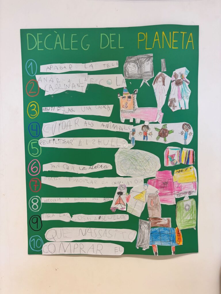 Com a producte final de la Situació d’Aprenentatge, l’alumnat ha elaborat un decàleg amb 10 consells per cuidar el planeta. Aquest decàleg recull idees i compromisos que podem aplicar a casa, a l’escola i en el nostre entorn per contribuir a tenir un món més net i sostenible.