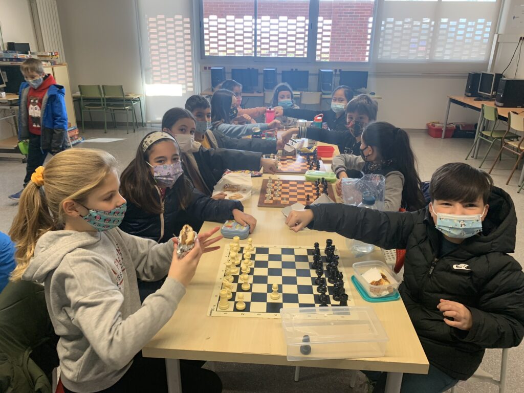 Aquest cop, però, s’ha organitzat per classe i no per cicles com altres cursos. Així doncs, cada dia l’alumnat d’un grup diferent de primària pot baixar voluntàriament a l’aula d’informàtica per jugar o aprendre des de 0 escacs amb el Pau, que a part de ser mestre també és un jugador d’escacs federat i li encanta jugar.