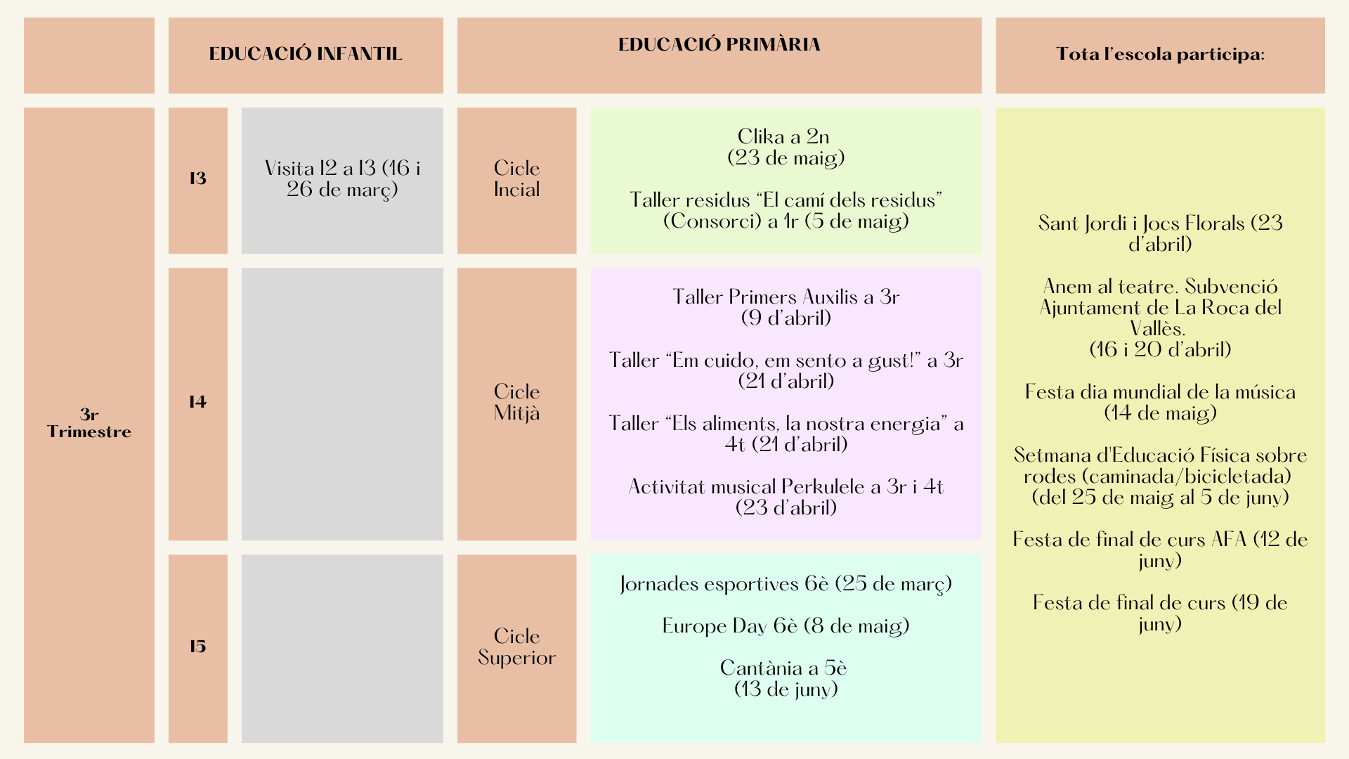 A continuació es detallen les activitats complementàries previstes al llarg del curs 2025-2026: