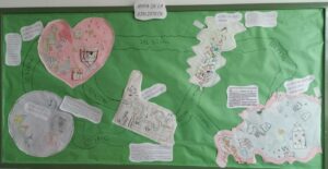 Durant el curs cada alumne, quan acaba de llegir un llibre, escriu el títol i l’autor en una etiqueta i l’enganxa al país que correspon. Si algú busca un llibre de por, d’amor, etc, només haurà de buscar al Mapa de la biblioteca.