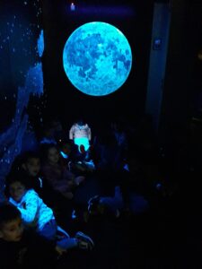 En el Planetari ens han ofert una sessió de coneixement del cel nocturn, ens han mostrat el cel d’èpoques passades o futures gràcies a l’acurada representació dels moviments celestes i dels astres (estrelles, planetes, satèl·lits, el Sol, etc.); i tanmateix, el cel des de diferents llocs de la superfície terrestre, o des d’altres objectes del Sistema Solar.