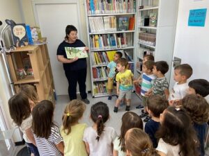 Provisionalment, els serveis de biblioteca pública s’ofereixen a les cargoles que hi ha al costat de L’Espai Muriel Casals. I allà és on hem anat, en diferents dies, els taurons i els elefants/es (Ei4A i B). Quin plaer escoltar a l’Imma explicar un conte. Ens delecta amb les seves meravelloses històries i ens deixa , com sempre, envadalits a petits i grans.
