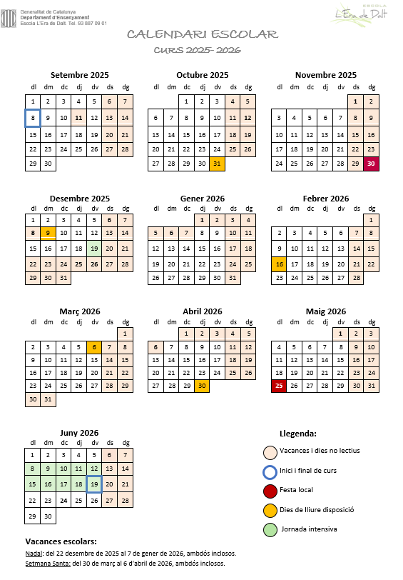 CALENDARI ESCOLAR 2025- 2026: