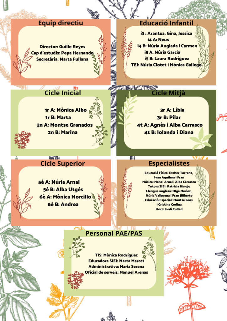 A continuació, trobareu una relació de l’equip de mestres de l’escola Les Arenes i el càrrec que desenvolupa.