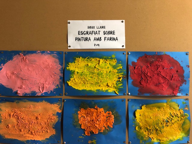 Els nens i nenes de P4 han dibuixat utlitzant la tècnica de l’esgrafiat sobre pintura amb farina.