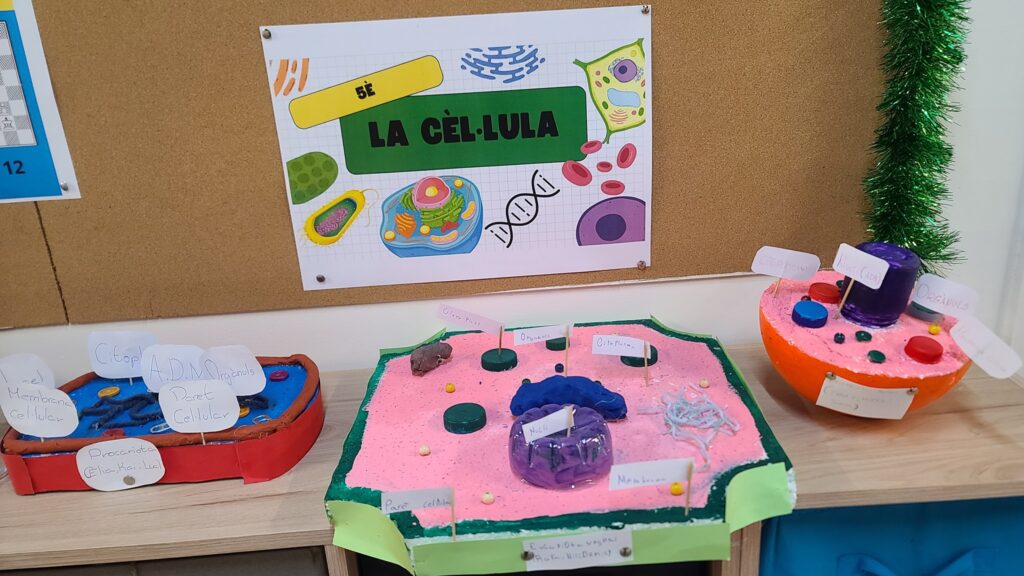 Durant aquest trimestre, els alumnes de 5è han estat treballant la cèl·lula a medi natural. Les últimes sessions han dedicat a fer pràctiques al laboratori amb els microscopis i a fer maquetes amb material reciclat. Han gaudit moltíssim!