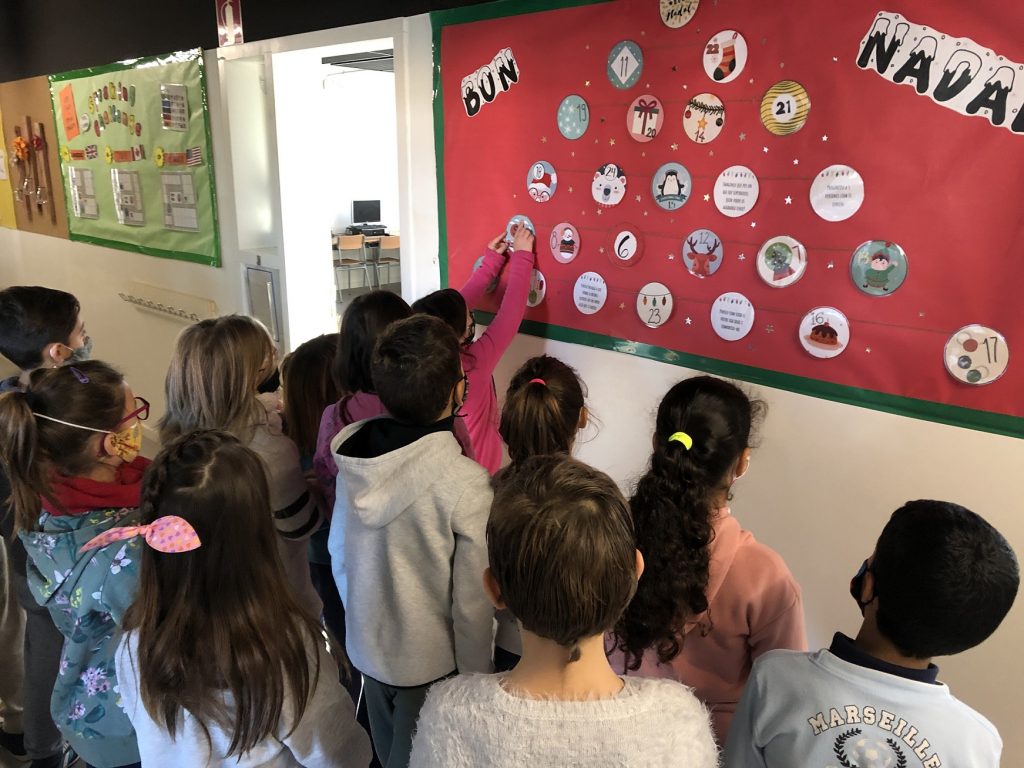 Aquests dies l’alumnat de primària està gaudint creant decoració de Nadal per l’aula i obrint el calendari d’advent. Aquest any el calendari ha sigut una mica diferent, en comptes de tenir xocolatines, cada bola conté una activitat per treballar diversos valors i fomentar la cohesió del grup. Els ha agradat molt!
