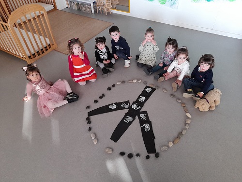 Els infants de 1 i 2 anys hem descobert el conte del “cargol i l herba de poniol” on es treballa la importància d ‘ajudar els amics. Amb aquest recurs hem treballat el Dia Internacional de la Pau. Tot seguit hem estampat l’empremta de les mans simulant coloms. Hem acabat el dia gaudint de la cançó “La festa de la Pau” de la Dàmaris Gelabert.
