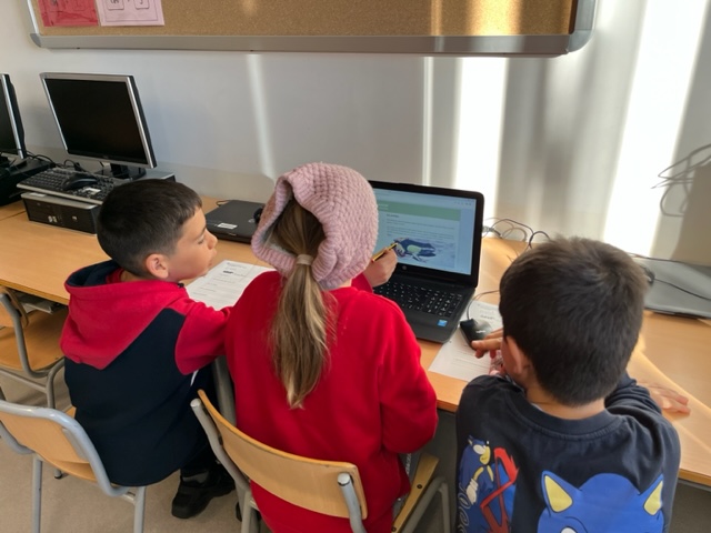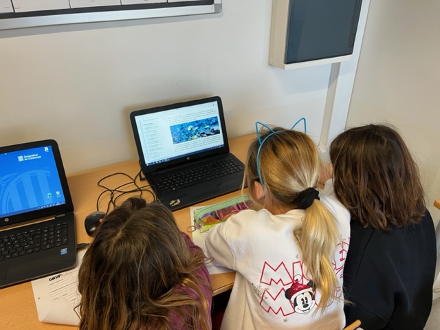 Els alumnes de 3r estan treballant els animals vertebrats. Mitjançant el treball cooperatiu, estan buscant informació a l’ordinador per convertir-se en experts en un grup d’animals concret. Després ho hauran d’exposar davant de la classe. Aquí els podeu veure molt concentrats treballant!