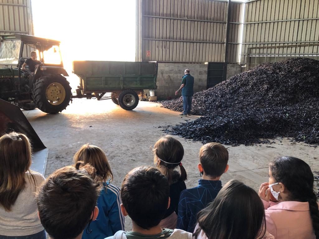 Els nens i les nenes de tercer han visitat la cooperativa i han après moltes coses sobre la garrofa i la feina que fan els pagesos: la collita, com es calcula el seu pes i el seu preu, per a què s’utilitza i alguns beneficis que té el consum de la garrofa.
