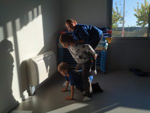 Fem acrosport Feu un comentari / Per admin / 29 de novembre de 2019 / 3r Educació Física General Portada Primària Les i els alumnes de 3r a l’àrea d’Educació Física hem fet una sessió d’acrosport on hem treballat, a més de l’equilibri, el treball en equip i la superació de les pors. Ha sigut molt divertit i amb l’ajuda dels companys ho hem aconseguit!