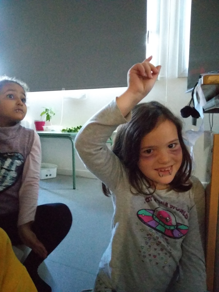 Halloween is almost here! Feu un comentari / Per admin / 30 d'octubre de 2019 / 1r 2n English ERASMUS + General Portada Primària And 2nd grade pupils now are vampires! We enjoy reading catalan texts and stories with scary voices and also some English riddles!Not only reading them bu t also they hae wrote them!! They are very very smart vampires!!!