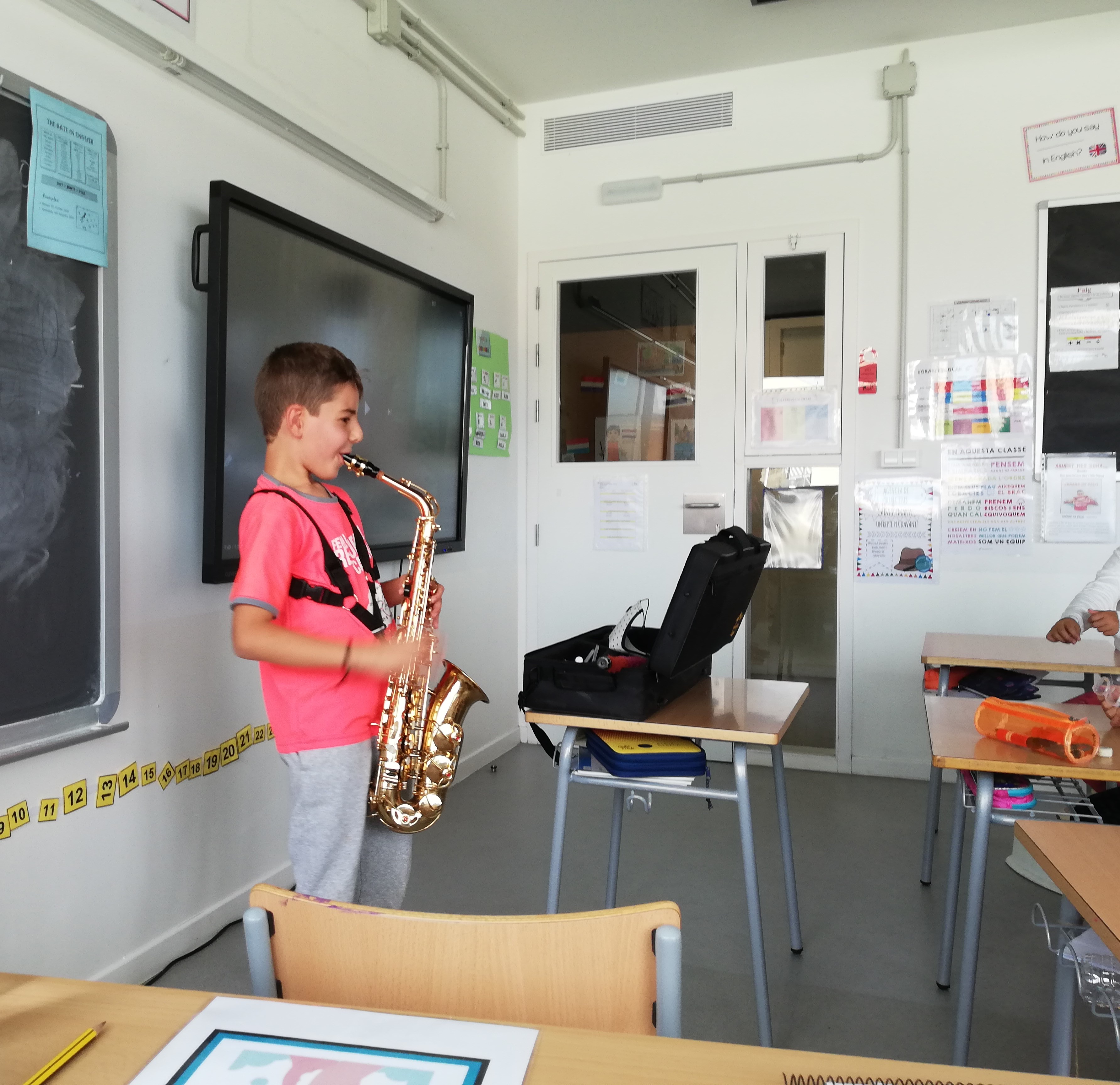 Aquest primer trimestre alguns nens i nenes han portat a classe instruments que tenen a casa. Durant la sessió de música els hem pogut veure de prop, descobrir de quins materials estan fets, i el més interessant, escoltar com sonen! El Gael de 2n ha portat un acordió, l’Aleix, la Carla i l’Àlex de 3r han portat un saxòfon, un violí, un teclat, un timbal i una caixa, i finalment, el Pau de 4t també ha portat un timbal que utilitza per acompanyar els diables. Us agraïm la vostra participació i animem a més alumnes a portar més instruments!