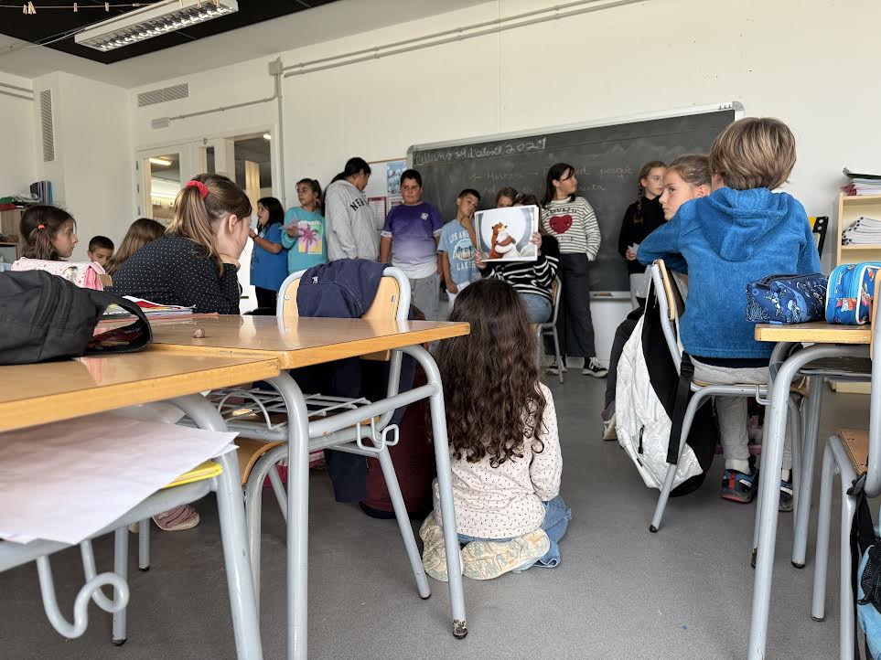 A l’hora d’anglès, els alumnes de 5è han llegit un conte de kamishibai als alumnes de 2n: “White bear, brown bear”. Així uns hem practicat el “reading” i els altres el “listening” i tots hem ampliat el vocabulari i gaudit d’una història i unes il.lustracions molt maques.
