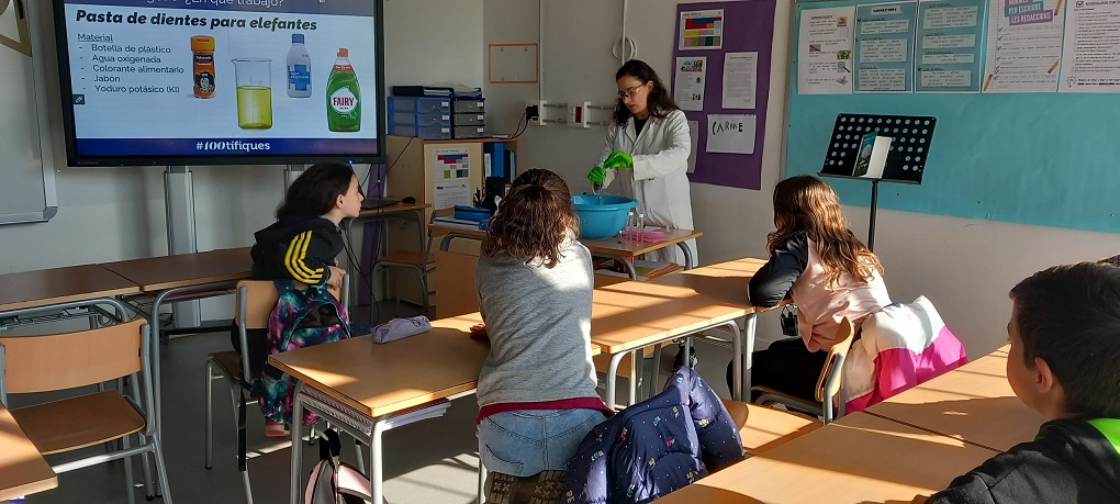 En el marc del programa 100tífiques que té com a finalitat promoure rols i models femenins de referència en els àmbits de les ciències i les enginyeries, per fomentar les vocacions científiques dels nens i, especialment, de les nenes, el passat divendres vam rebre la visita de la Tania i la Laura, dues científiques de l’institut Català d’Investigació Química.