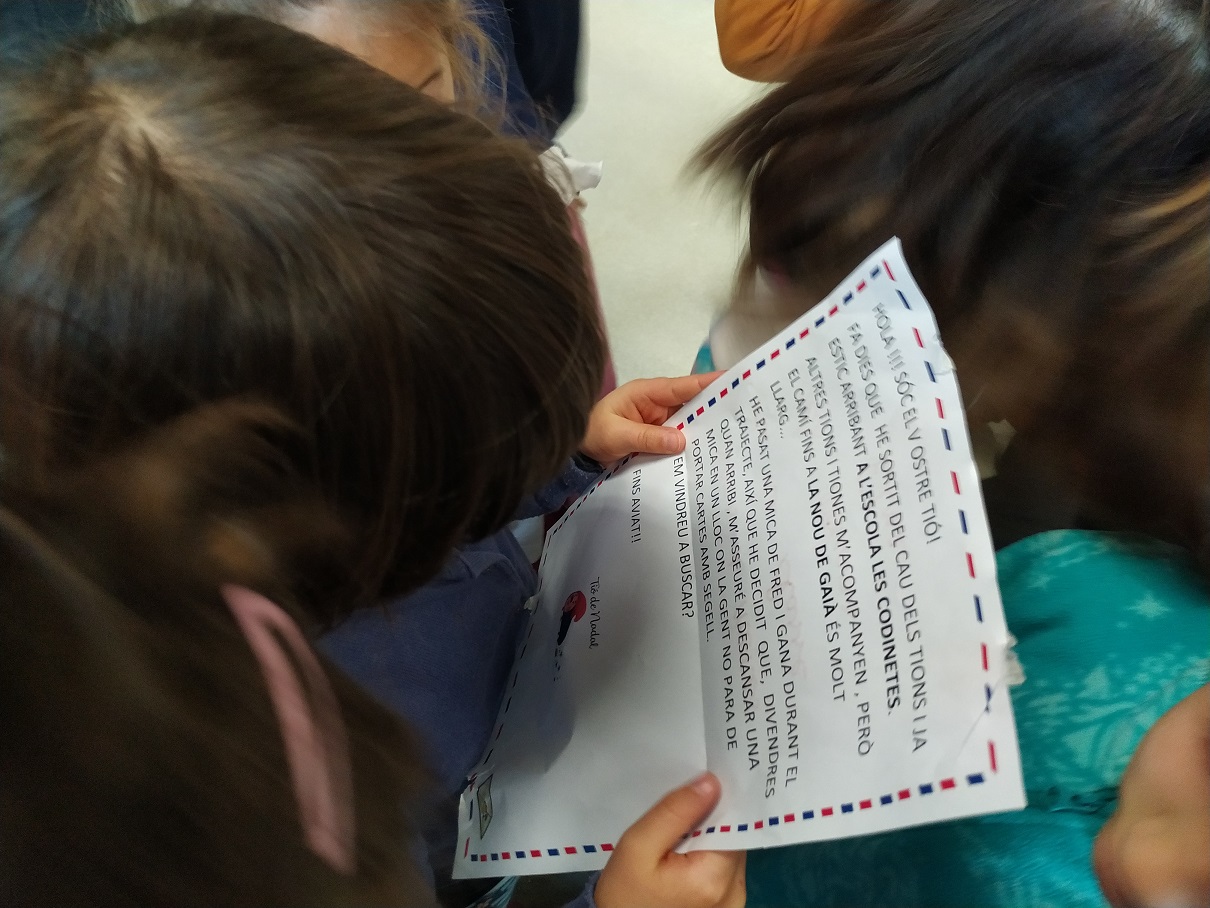 Sortim a buscar el tió Feu un comentari / Per admin / 30 de gener de 2020 / General Infantil P5 En arribar aquest dilluns a l’escola ens hem trobat amb una carta del tió! ens expica que està arribant al nostre poble i que l’anem a buscar… el trajecte ha sigut llarg i està mooolt cansat! buscar