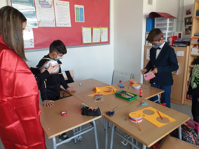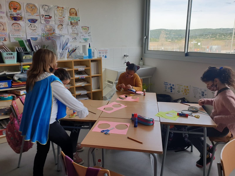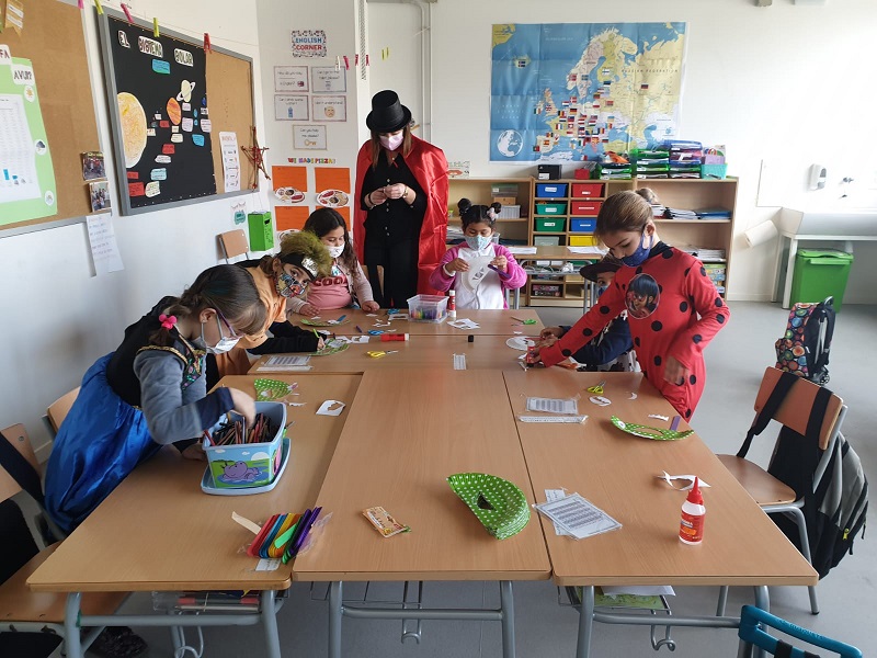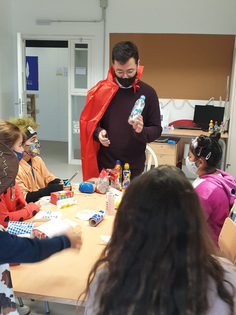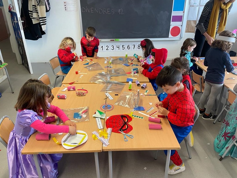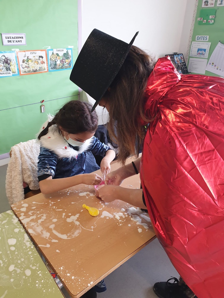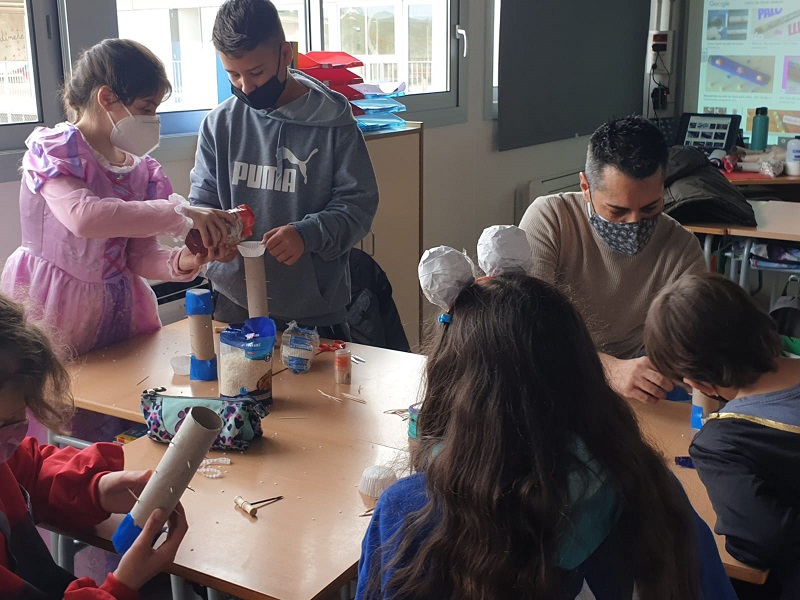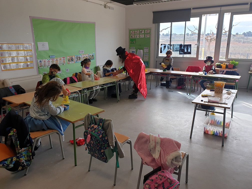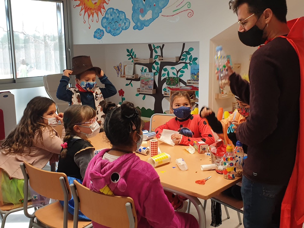 El divendres els i les infants de l’escola va celebrar el carnaval fent diferents tallers com manualitats, jocs cooperatius, experiments, creació d’un instrument…