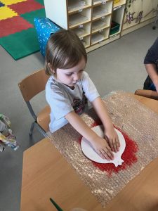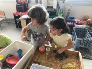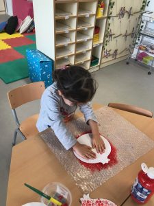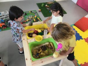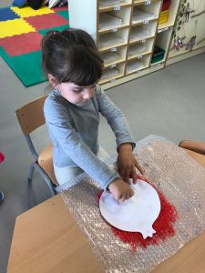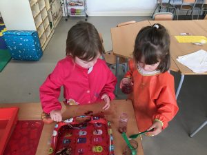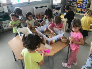 Fem transvasament a la nostra taula d’experimentació, treballem la motricitat fina i reforcem la representació de les parts de la cara.