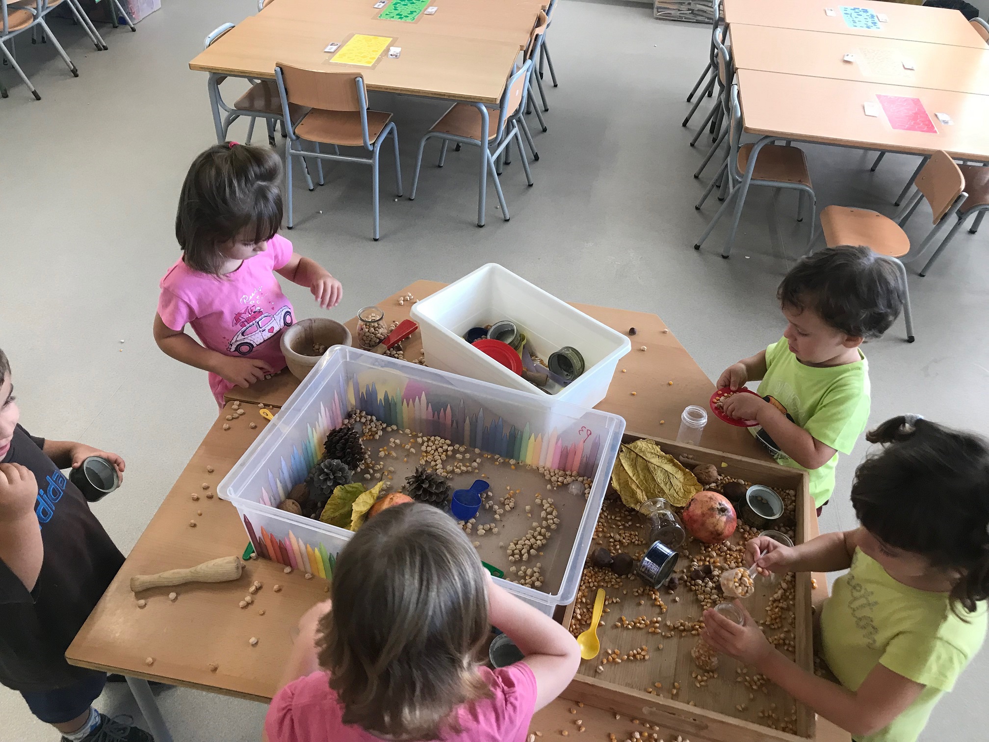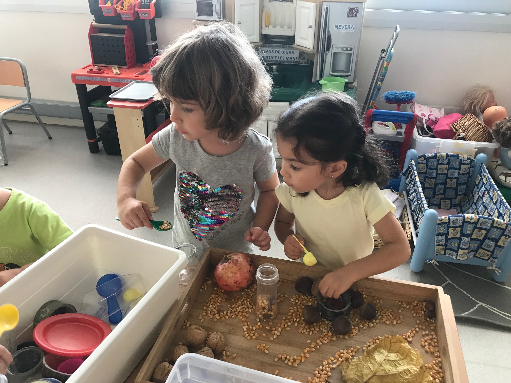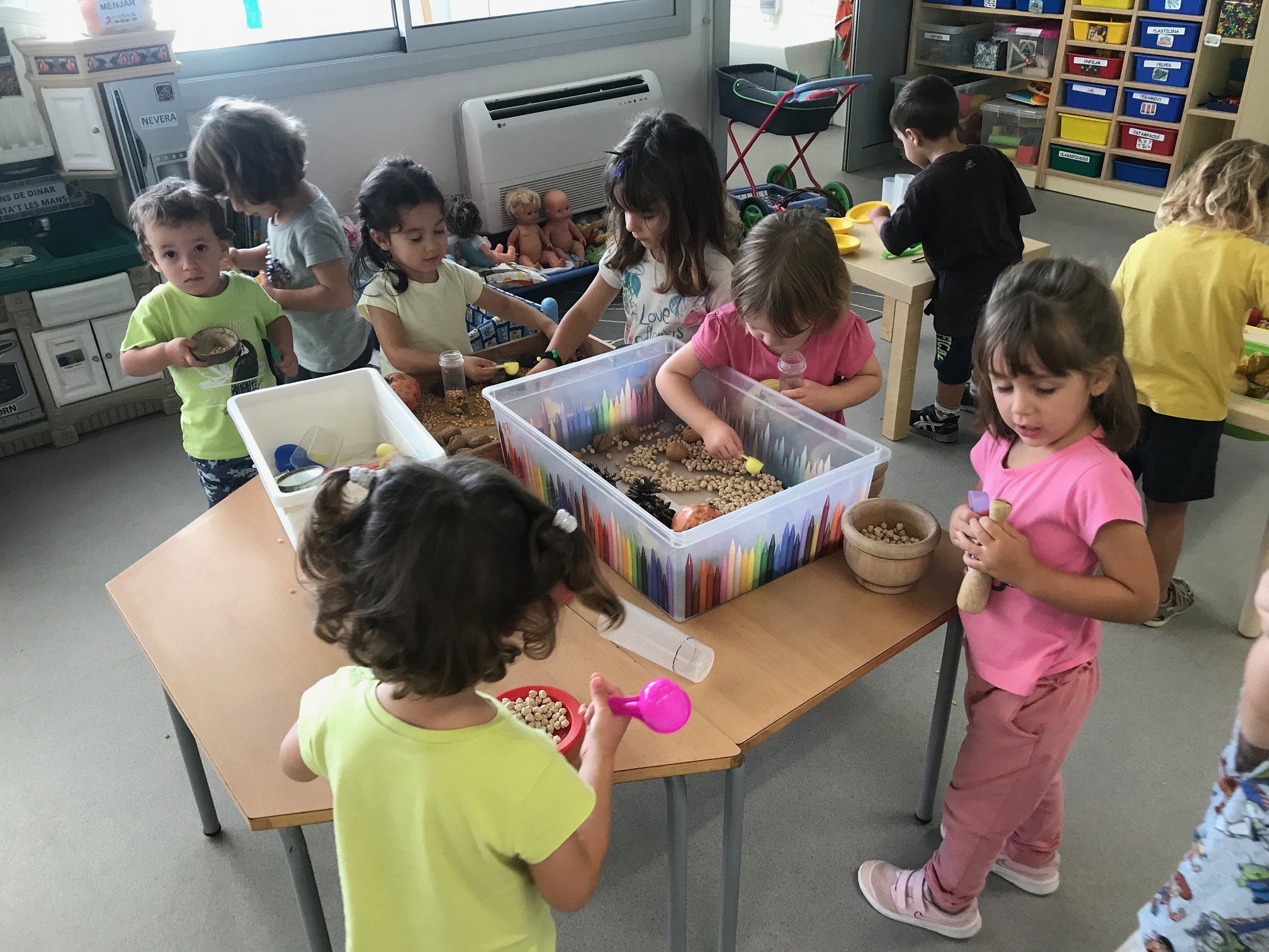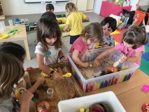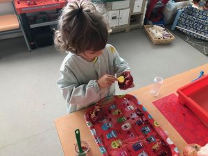 Fem transvasament a la nostra taula d’experimentació, treballem la motricitat fina i reforcem la representació de les parts de la cara.