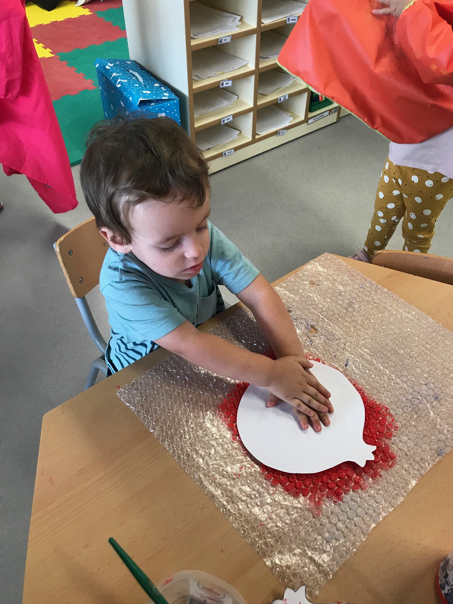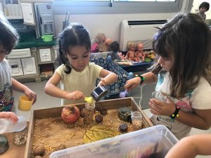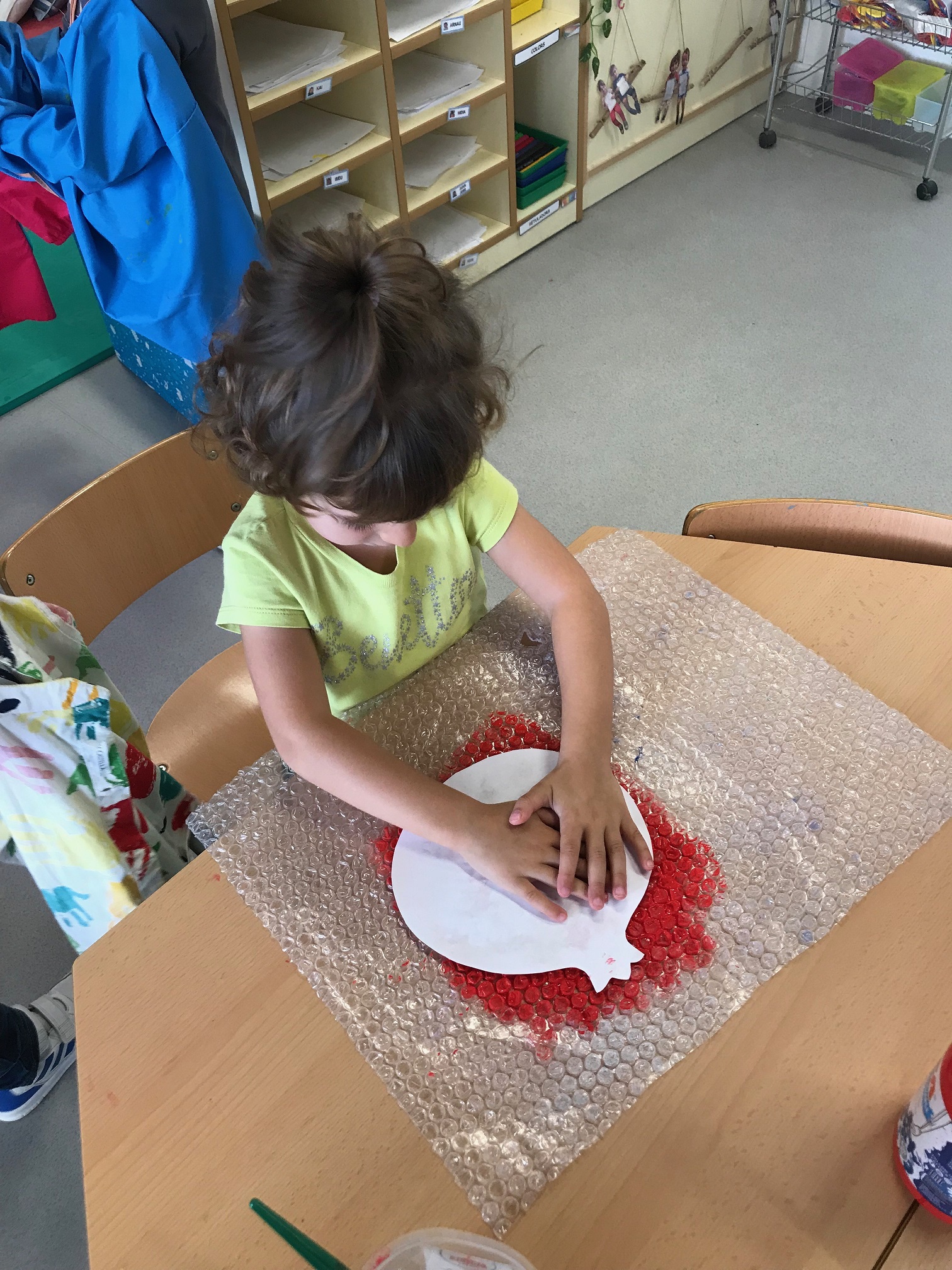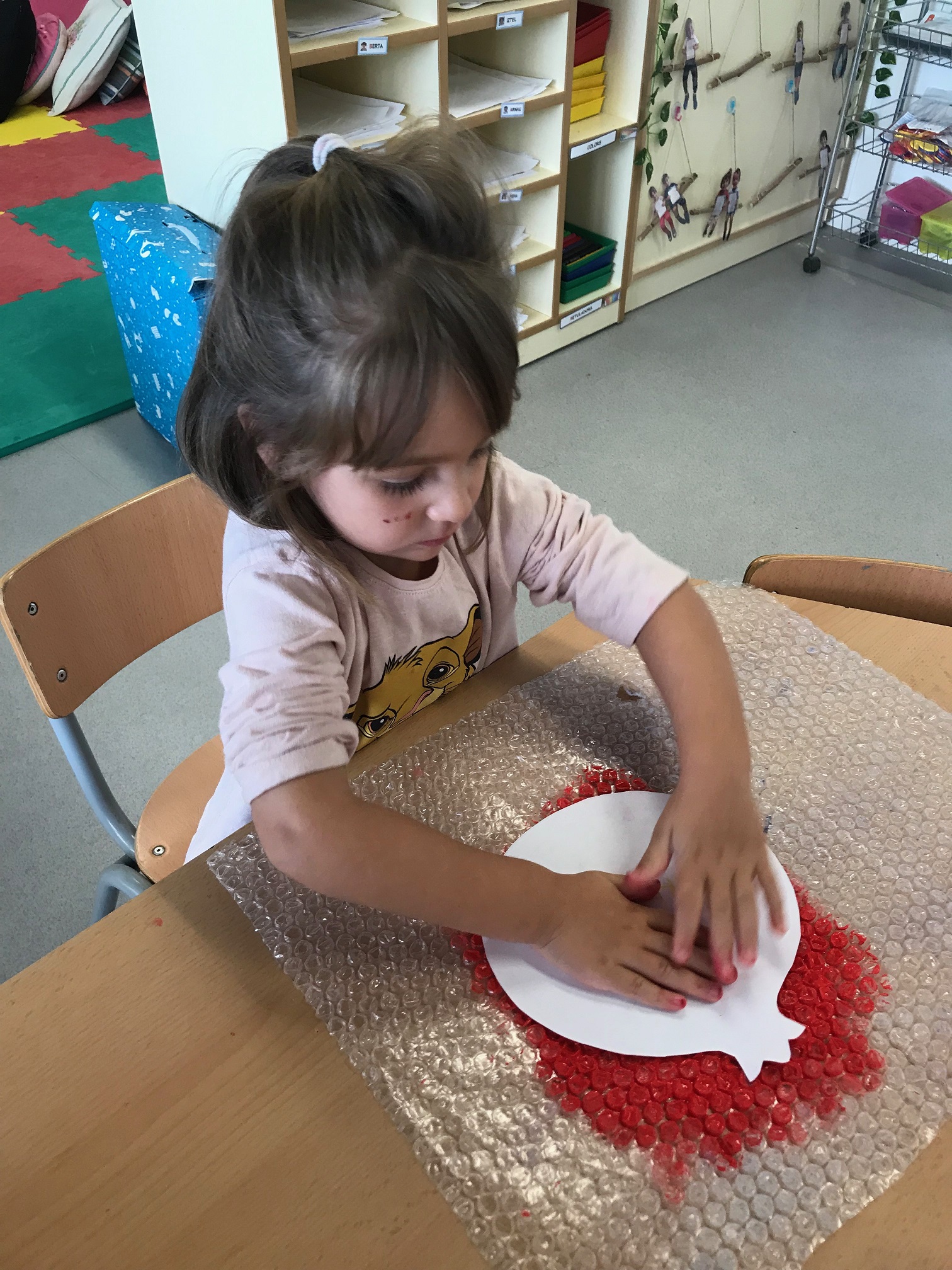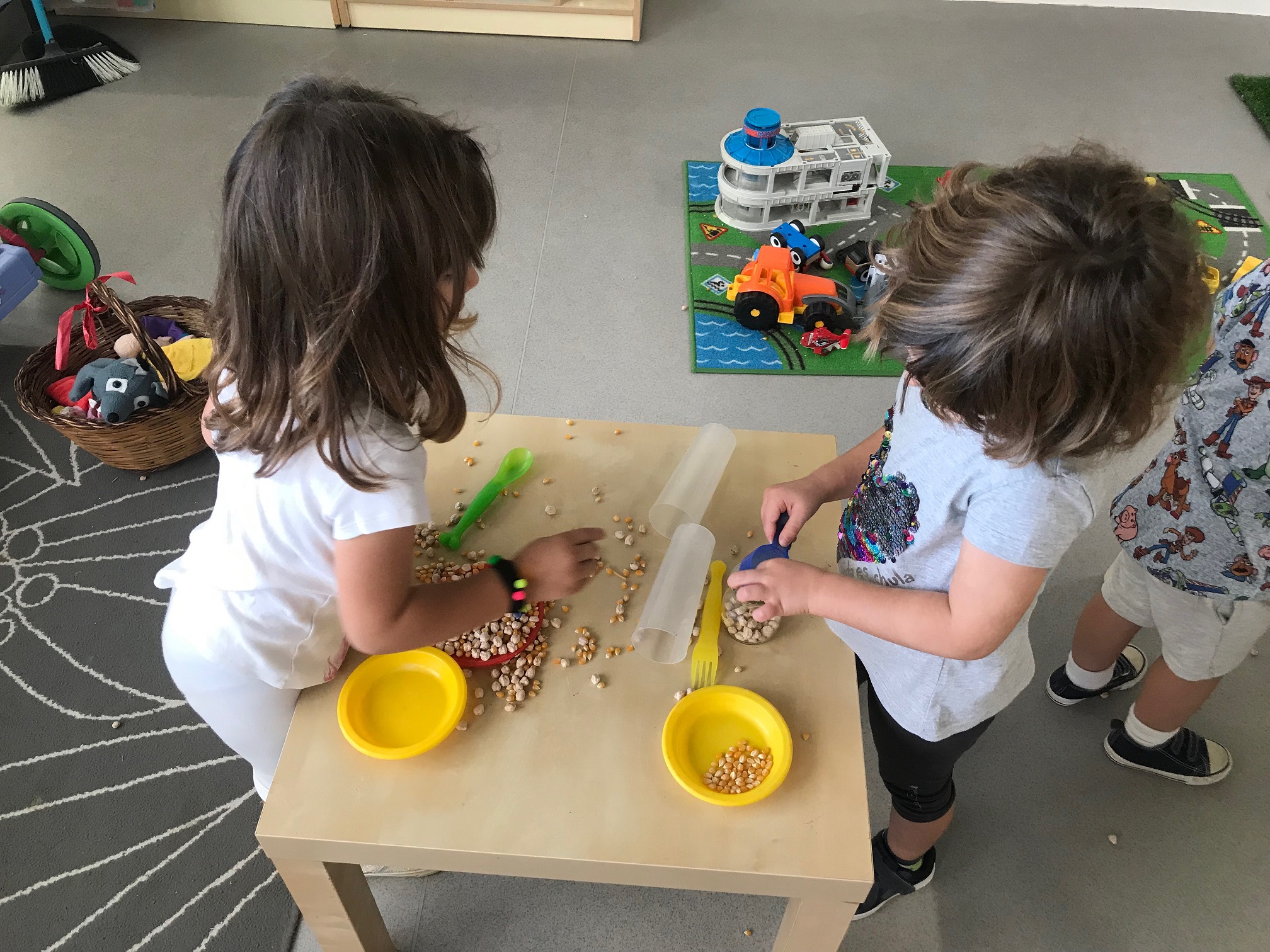 Fem transvasament a la nostra taula d’experimentació, treballem la motricitat fina i reforcem la representació de les parts de la cara.