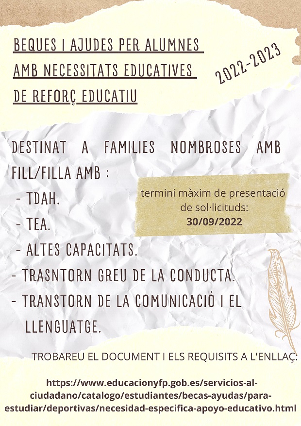 BEQUES I AJUDES PER ALUMNES AMB NECESSITATS EDUCATIVES DE REFORÇ EDUCATIU