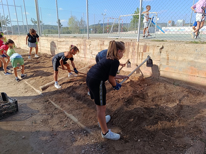 Els alumnes de 4t hem començat amb el projecte de l’hort escolar. Estem molt motivats i hem treballat molt per aconseguir preparar la terra. Per poder dur a terme aquesta tasca hem utilitzat eines específiques de l’hort: l’aixada, el raclet, l’arpella i el càvec.