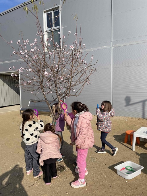 La setmana passada els infants de la classe dels arbres d’I5 vam sortir al pati de l’escola per observar el nostre ametller i comprovar si la dita del mes de febrer era certa o no (la dita diu: “Pel febrer treu flors l’ametller”). També vam aprofitat per observar aquest bonic arbre en procés de floració, fixant-nos en un munt de detalls! Fins i tot vam trobar una ametlla!