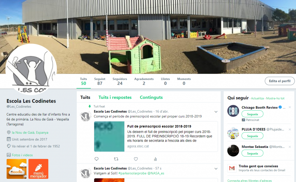 Twitter “Les_Codinetes” Feu un comentari / Per admin / 20 d'abril de 2018 / Portada Us recordem que tenim al vostre abast el twitter de l’escola: Tweets by Les_Codinetes